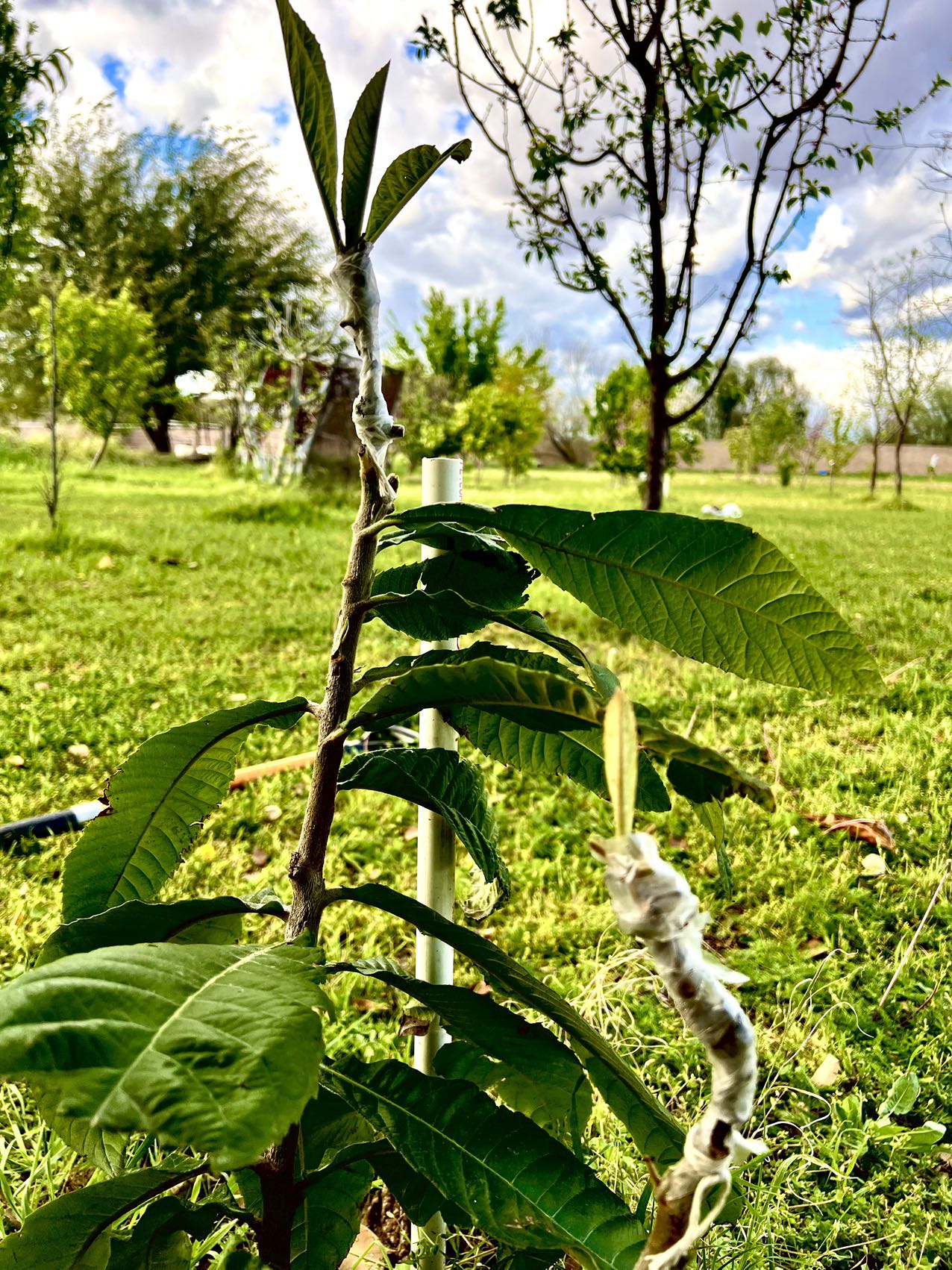 第一棵嫁接成功的枇杷树,两个嫁接枝条都活了,这是塑料袋摘了之后的照片。