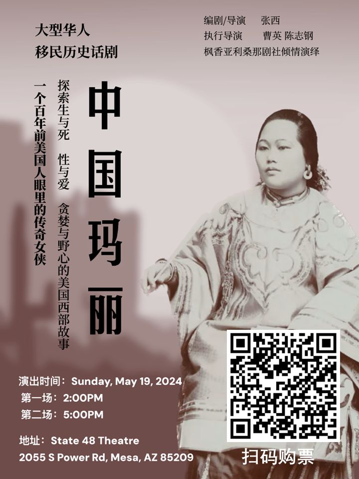 【本报讯】秋香报道:大型华人移民历史话剧《中国玛丽》已于4月17日开始售票,剧院售票业绩已初现喜人成绩:开票第一天首场已售出一半,第二场售出了三分之一。这也是凤凰城华人社区的舞台演出,首次实现网上购票对号入座的新形式。
