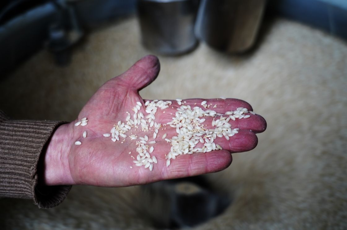 图为意大利高端大米生产商展示加工过程中的大米。(图片来源:新华社资料图)