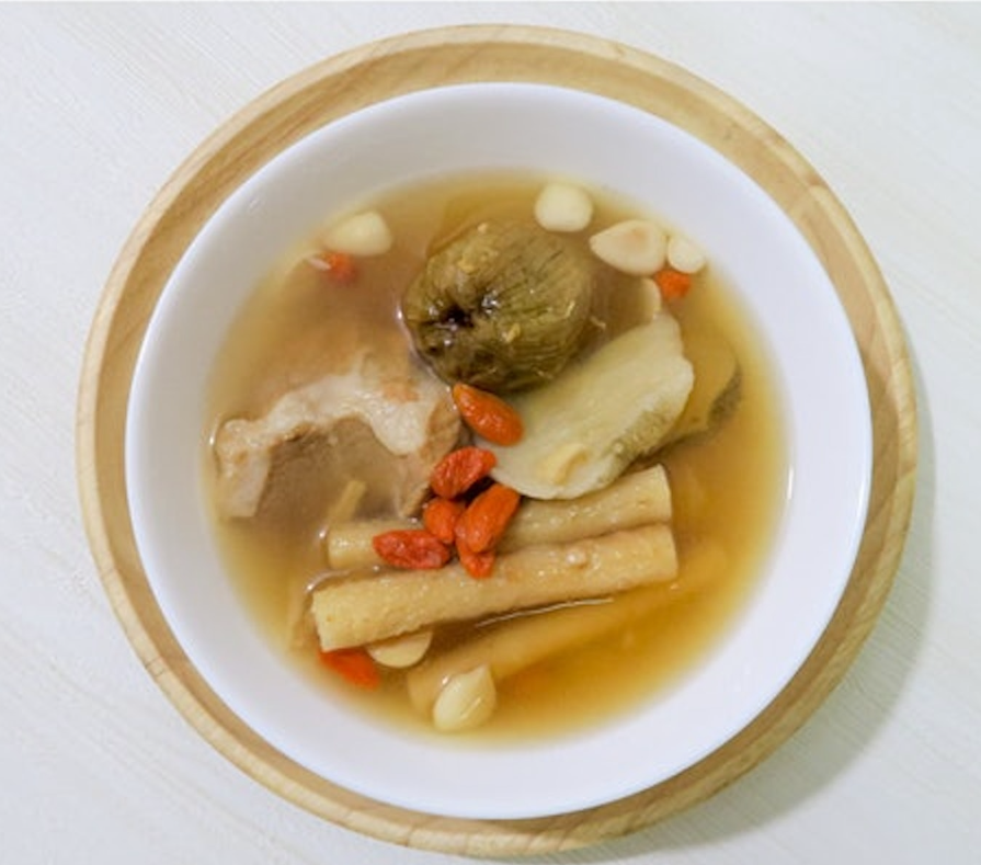 4.将枸杞子加到汤里,再煲10分钟,并加少许盐调味,即成。