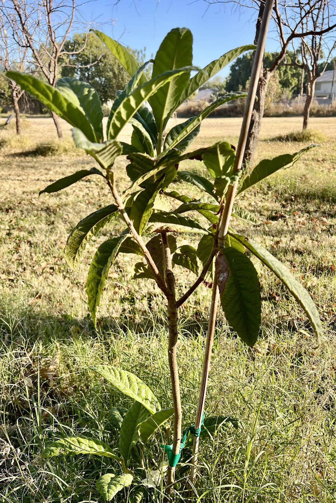 当我们的枇杷树生病之后,我们又赶紧买了另外一棵枇杷树,种到了地里。目前这棵后种的枇杷树长势喜人,也许两三年后会开花结果。
