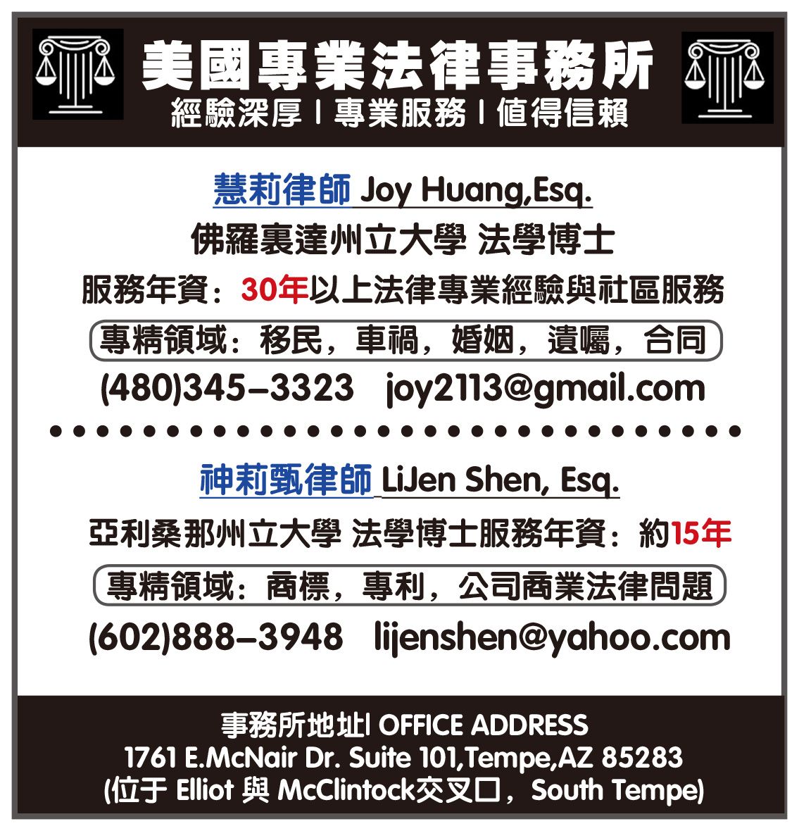 慧莉律師Joy Huang,Esq.