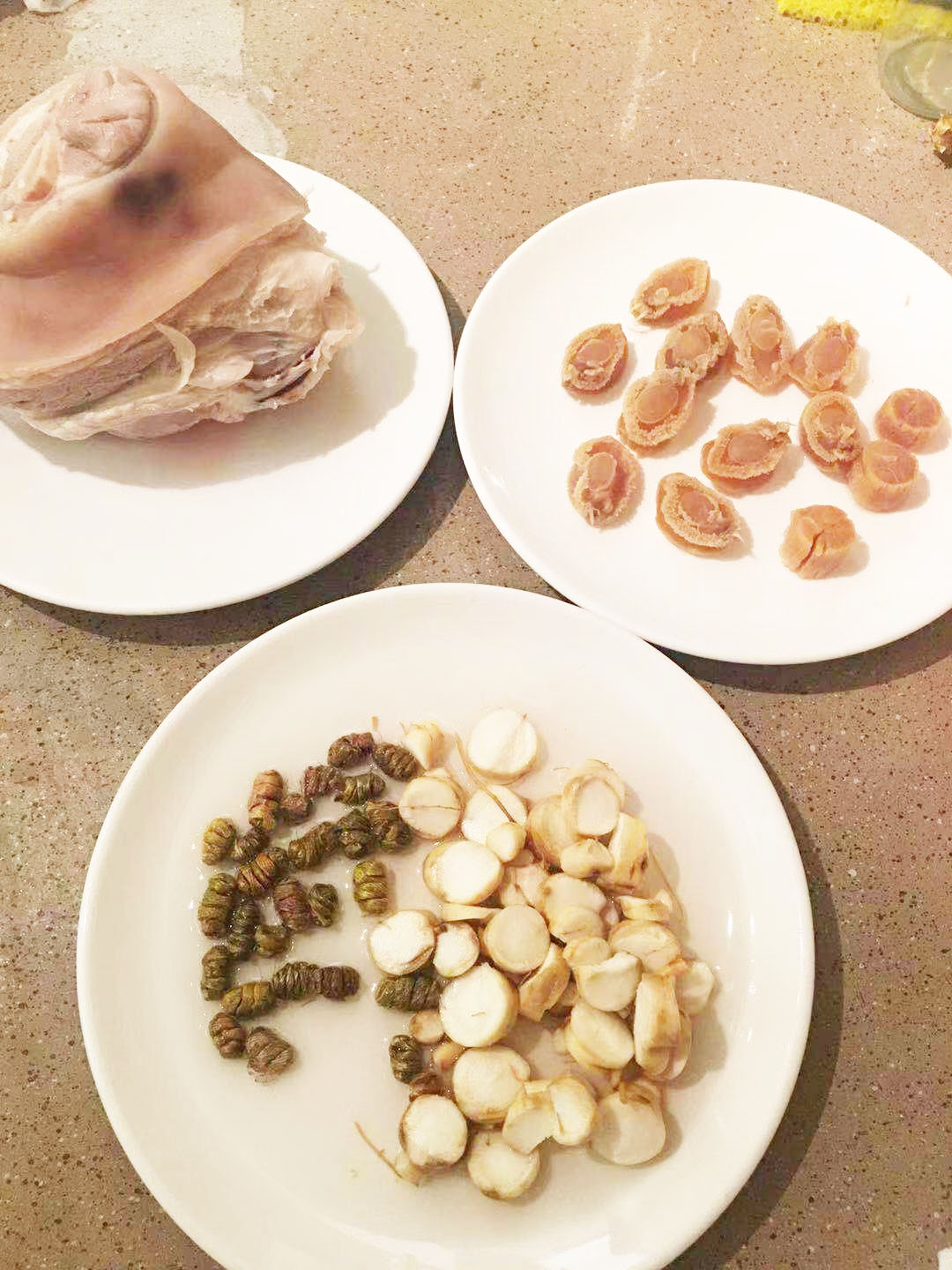 野生纹党参、西藏野生红芪、杞子王、白莲子、龙牙百合、正宗铁棍山药、桂圆肉、新会老陈皮、元贝、沙参玉竹、煲猪𦟌!3.5小时左右出炉。一个星期最少要煲一次老火靓汤!保健养生要坚持不懈才能有更好的效果!功效:补气提气、治疗虚汗倒汗、健脾养胃、润肺清心、治疗血虚气亏…这是我的最爱!值得推荐给大家,你值得拥有!