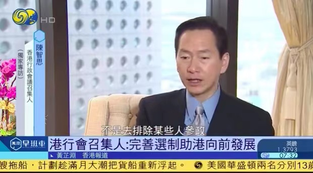 鳳凰衛視獨家專訪香港行政會議召集人陳智思 完善香港選舉制度確保有能力的愛國者治港