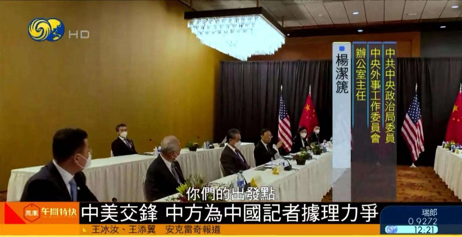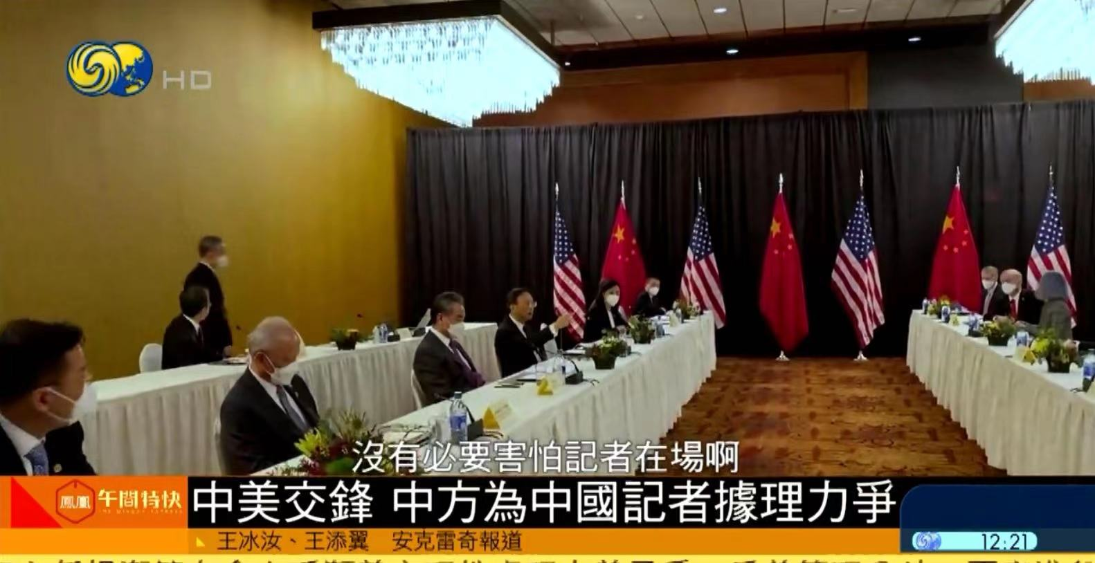 鳳凰衛視專稿:中美高層戰略對話3月18日在阿拉斯加州安克雷奇舉行,在第一輪對話中,原定8分鐘的開場致辭進行了大約90分鐘。中方代表團對美方一度要求記者離開會場表達了抗議。