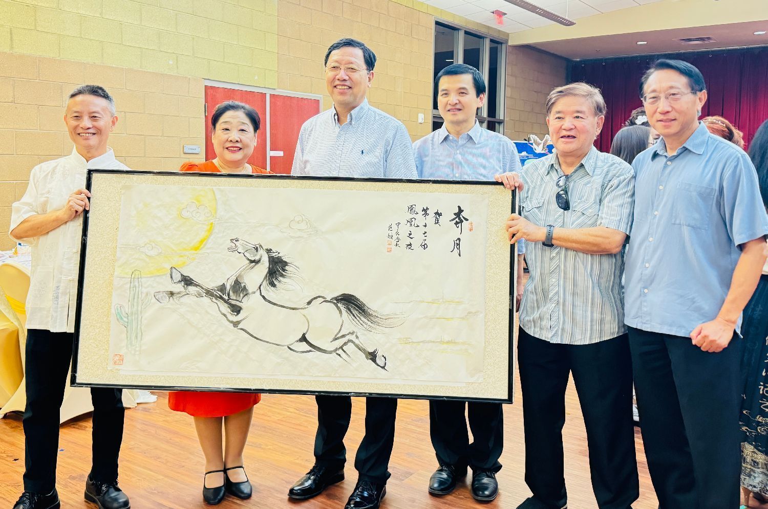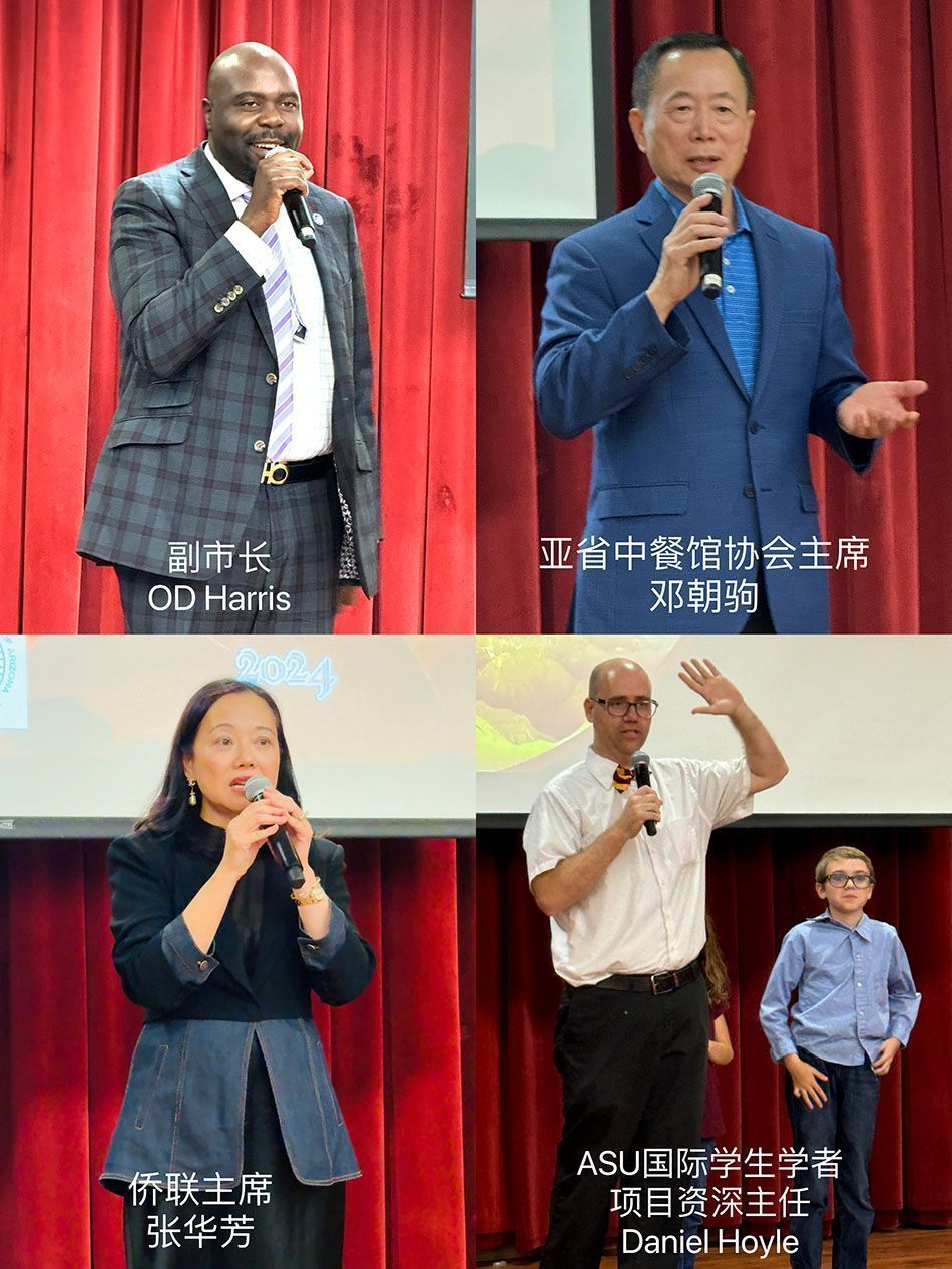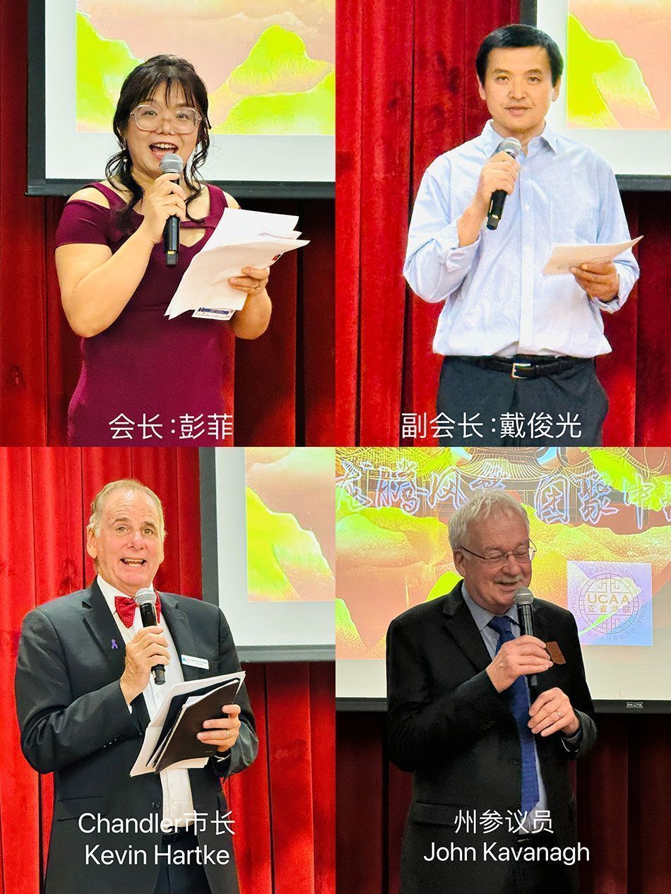 华联主席彭菲、州参议员John Kavanagh,钱德勒市长Kevin Hartke,副市长OD Harris、ASU国际学生学者项目资深主任Daniel Hoyle、亚省中餐馆协会主席邓朝驹、侨联主席张华芳等嘉宾先后发言,祝贺晚会圆满成功,也向华人朋友带来中秋祝福。画家范融现场作画《奔月》,为晚会助庆。