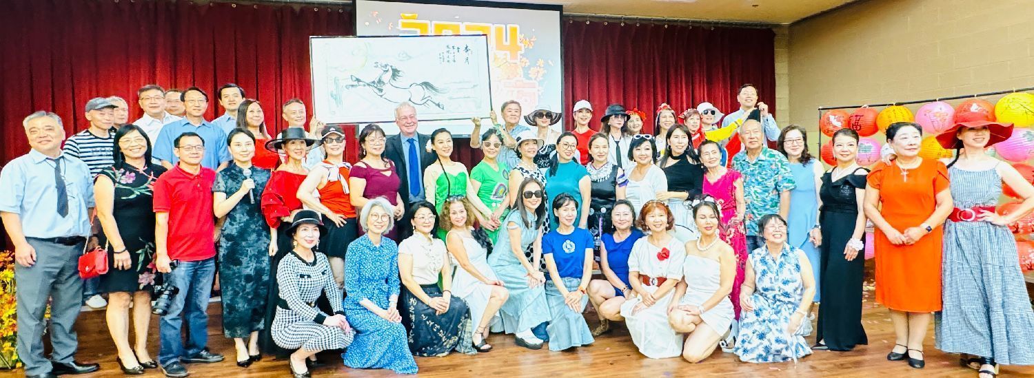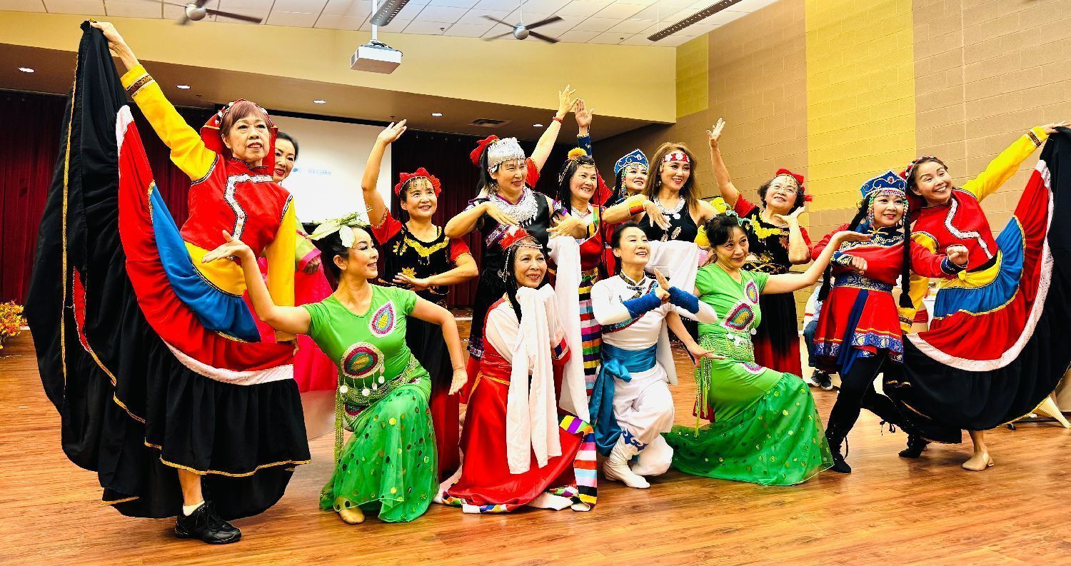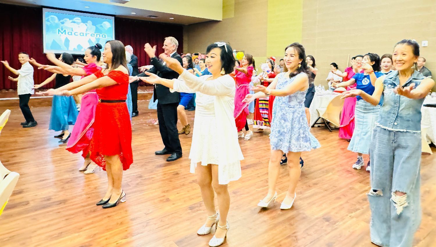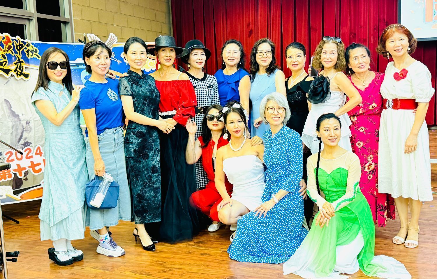 在著名舞蹈老师闻琳玲带领下,《Macarena》和《小苹果》音乐一响,观众、市长、议员、侨领舞蹈全场。古韵今风文创社的步步生辉时尚T台秀,婀娜多姿。