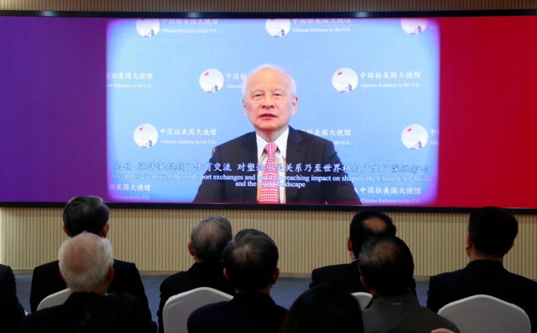 中国驻美大使崔天凯在开幕式上视频致辞。(图片来源:中新社)