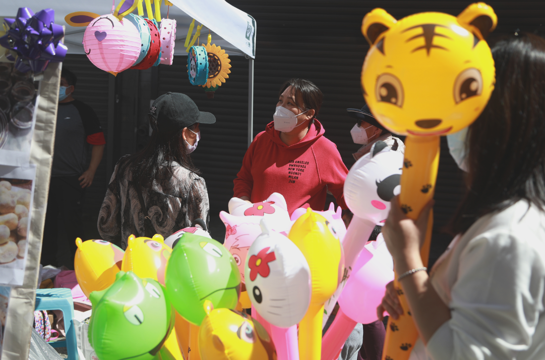 9月11日,人们在旧金山唐人街中秋街会上选购节庆用品。