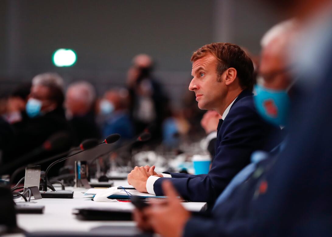 11月1日,法国总统马克龙出席在英国格拉斯哥举行的《联合国气候变化框架公约》第26次缔约方大会世界领导人峰会开幕式。