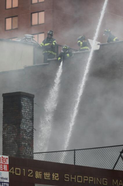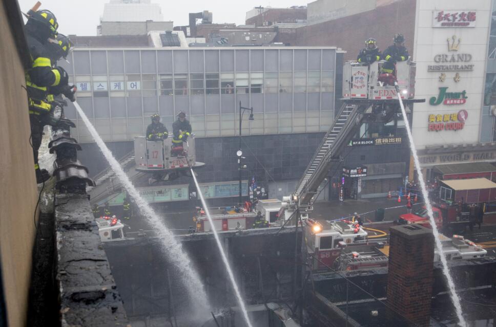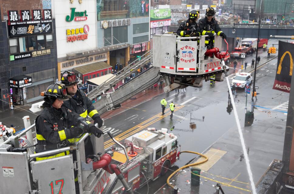 消防员在纽约法拉盛华人社区灭火。(图片来源:纽约市消防局推特)