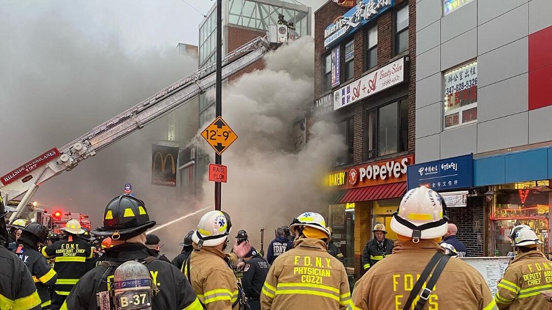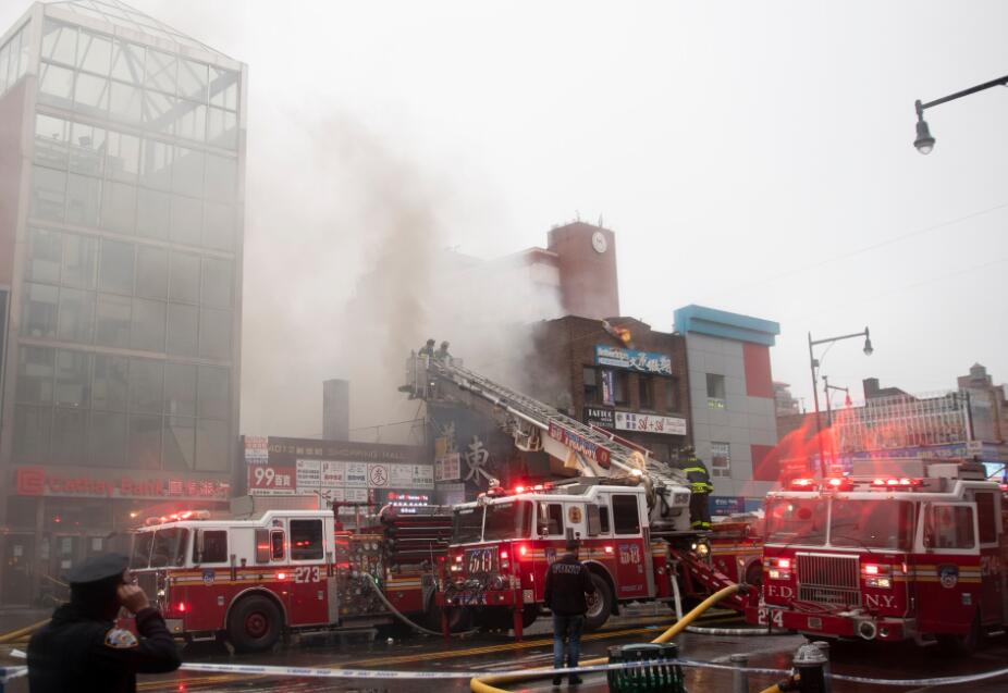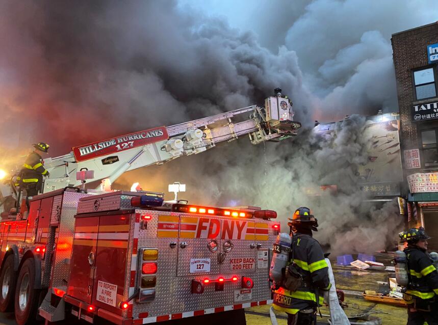 美国纽约华人社区商场突发大火