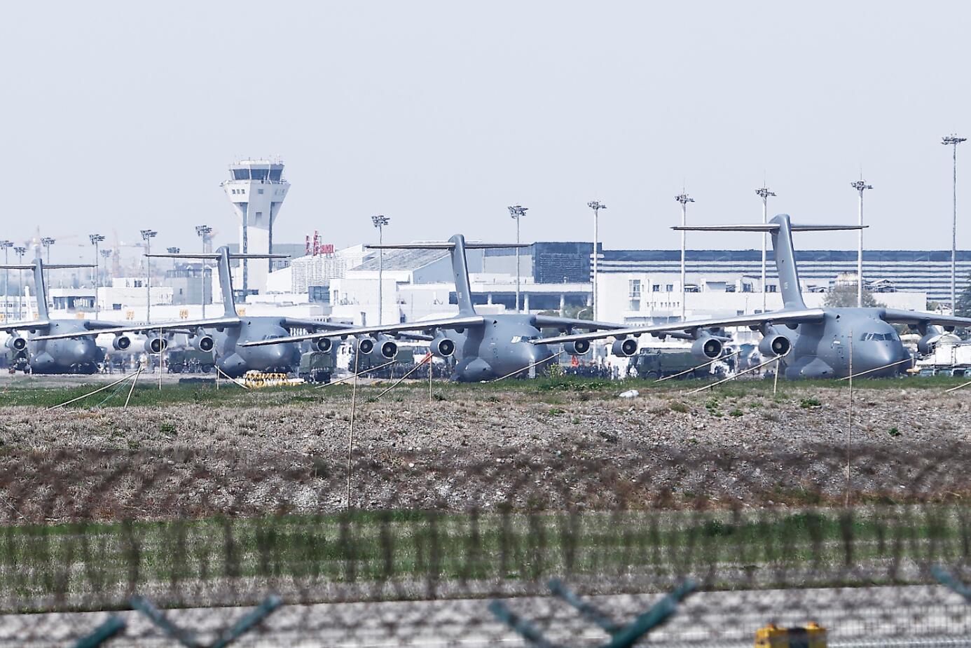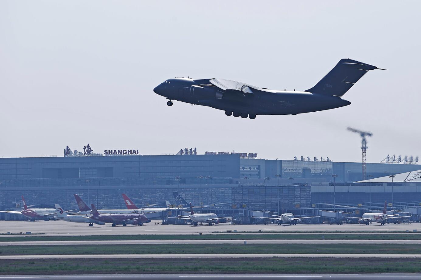 多架次运-20大型运输机7日降落在上海虹桥机场,支援上海疫情防控工作。(图片来源:中新社)