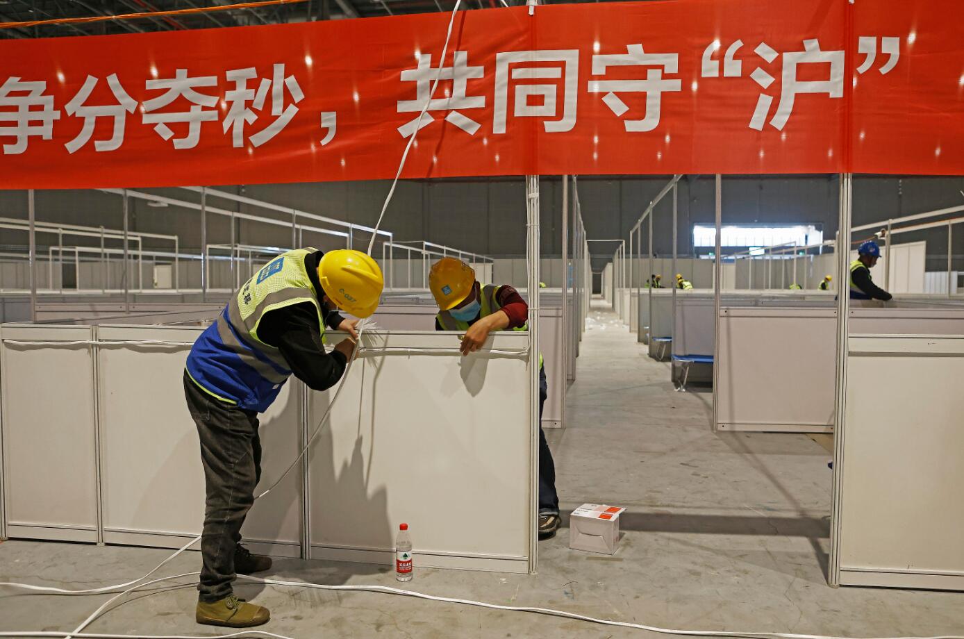为应对当前新冠肺炎疫情,上海正将中国国家会展中心(上海)改建成又一座方舱医院,建成后有望提供4万张床位。(图片来源:中新社)