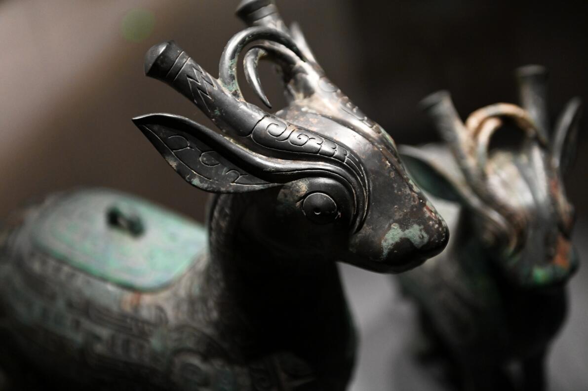 这是陕西考古博物馆展出的宝鸡石鼓山商周墓地出土的牺尊(4月28日摄)。
