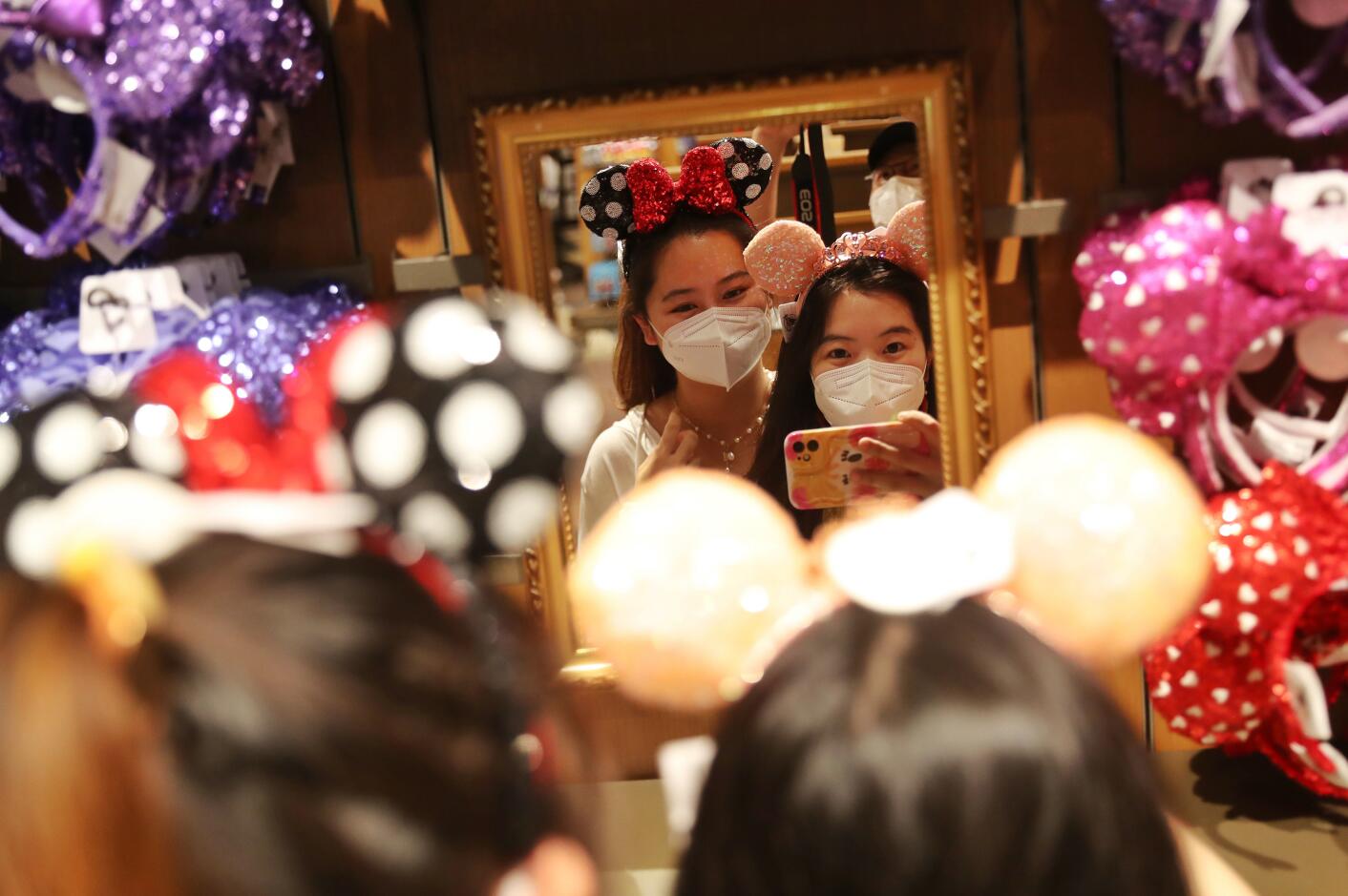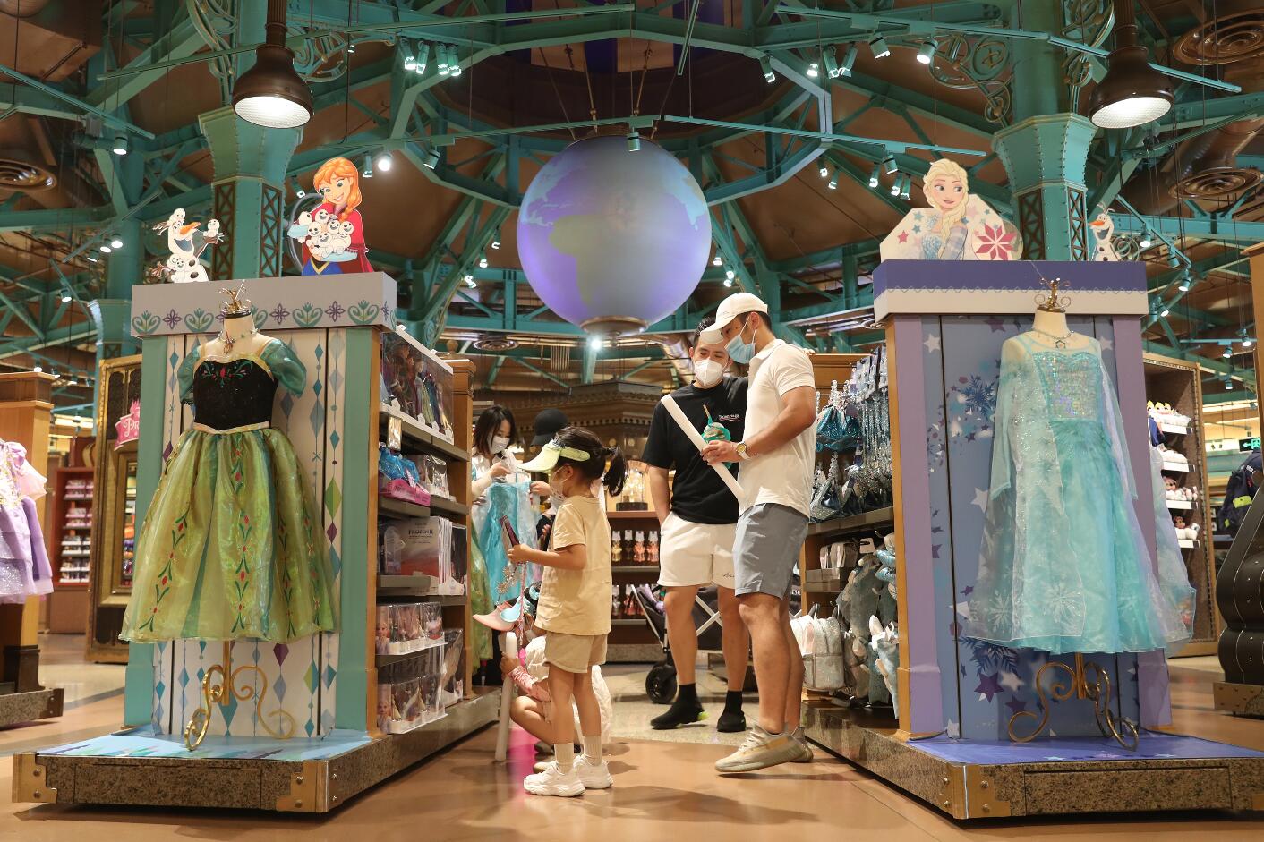 游客在上海迪士尼世界商店购物。
