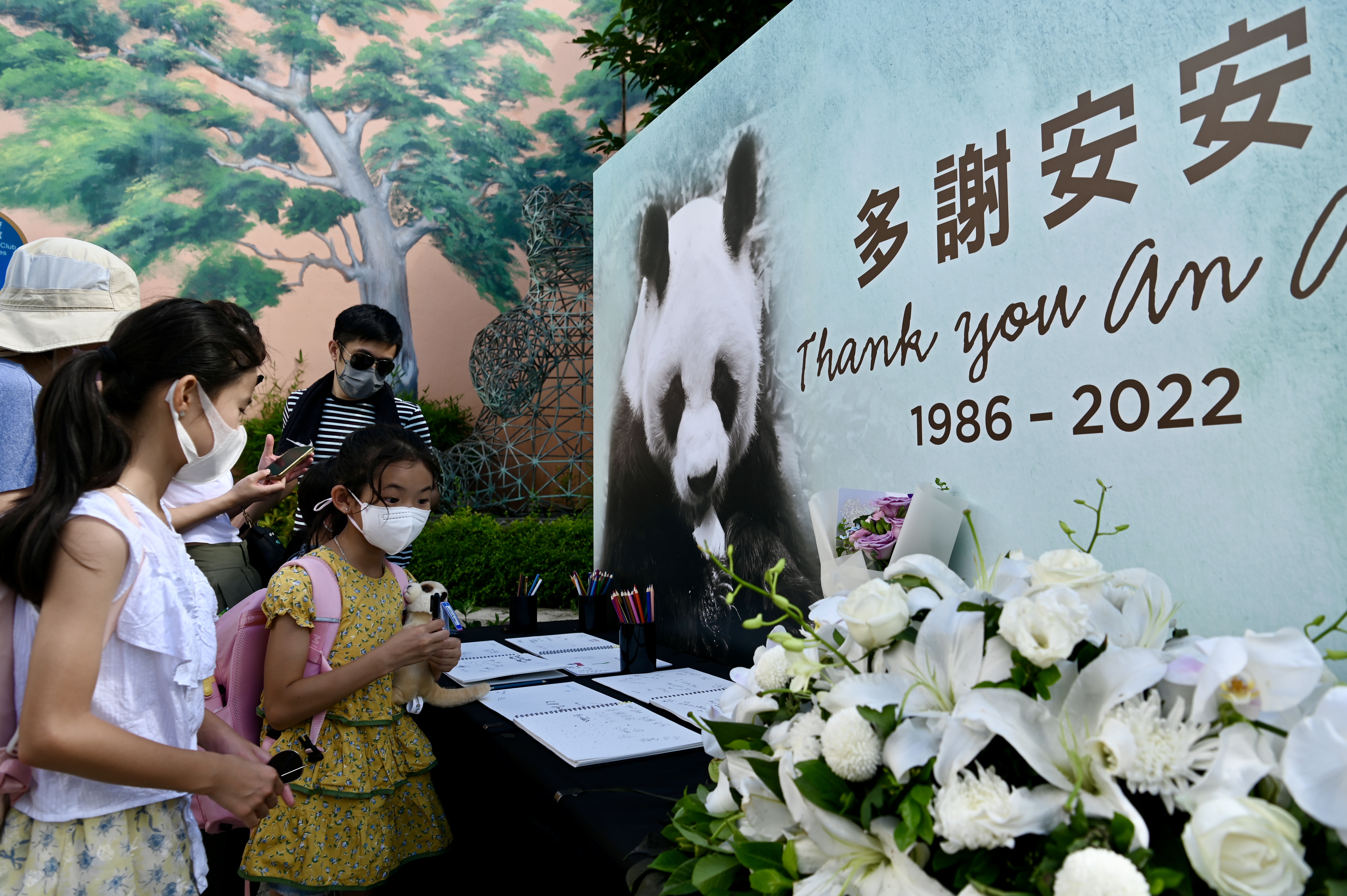 陪伴香港市民23年的大熊猫安安,健康情况持续转差 。7月21日,香港海洋公园宣布大熊猫安安离世,终年35岁。海洋公园于“香港赛马会四川奇珍馆”外设置吊唁册,馆内亦摆放悼念安安的图片及鲜花。