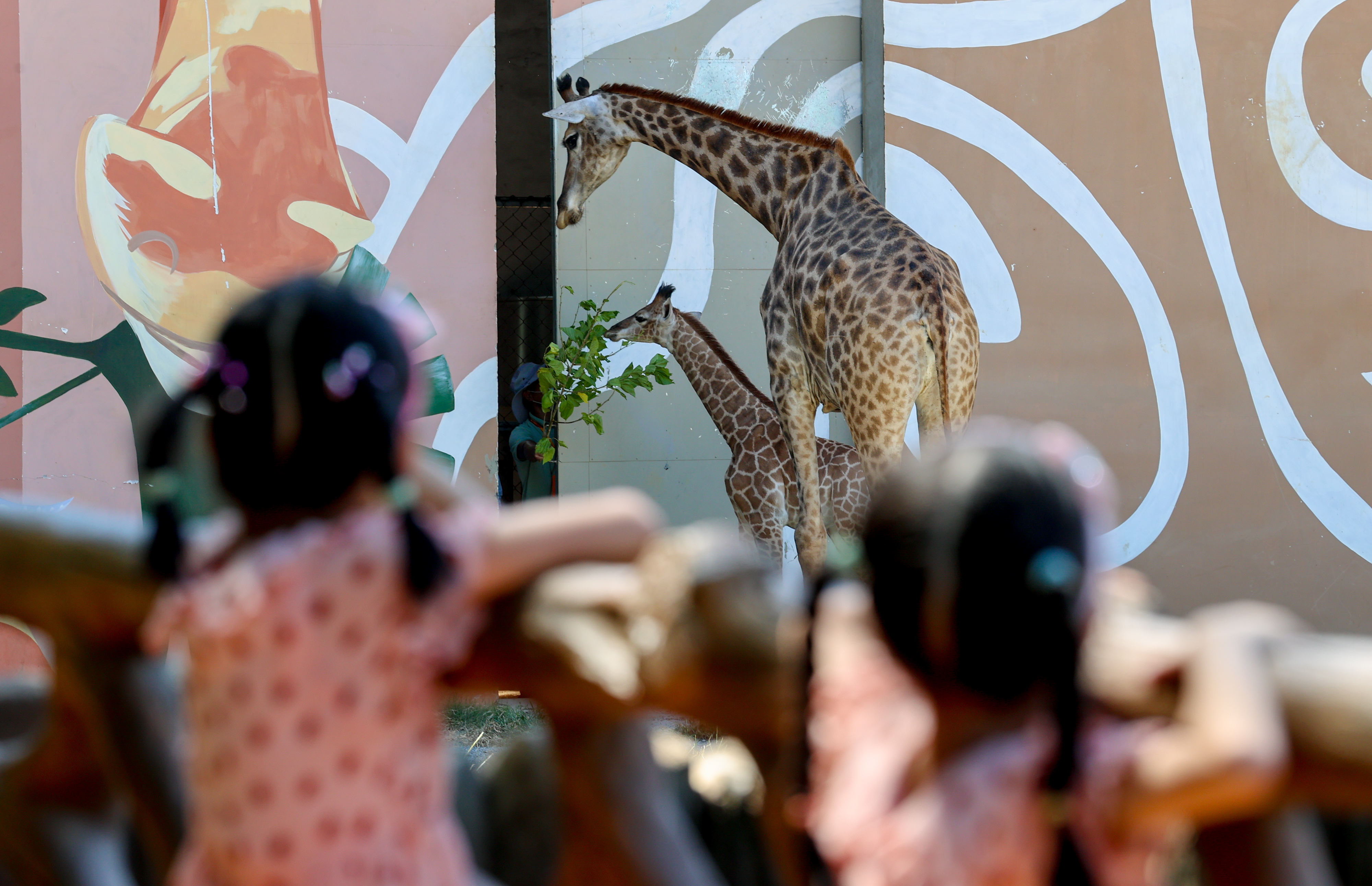 图为长颈鹿宝宝吸引市民观看。