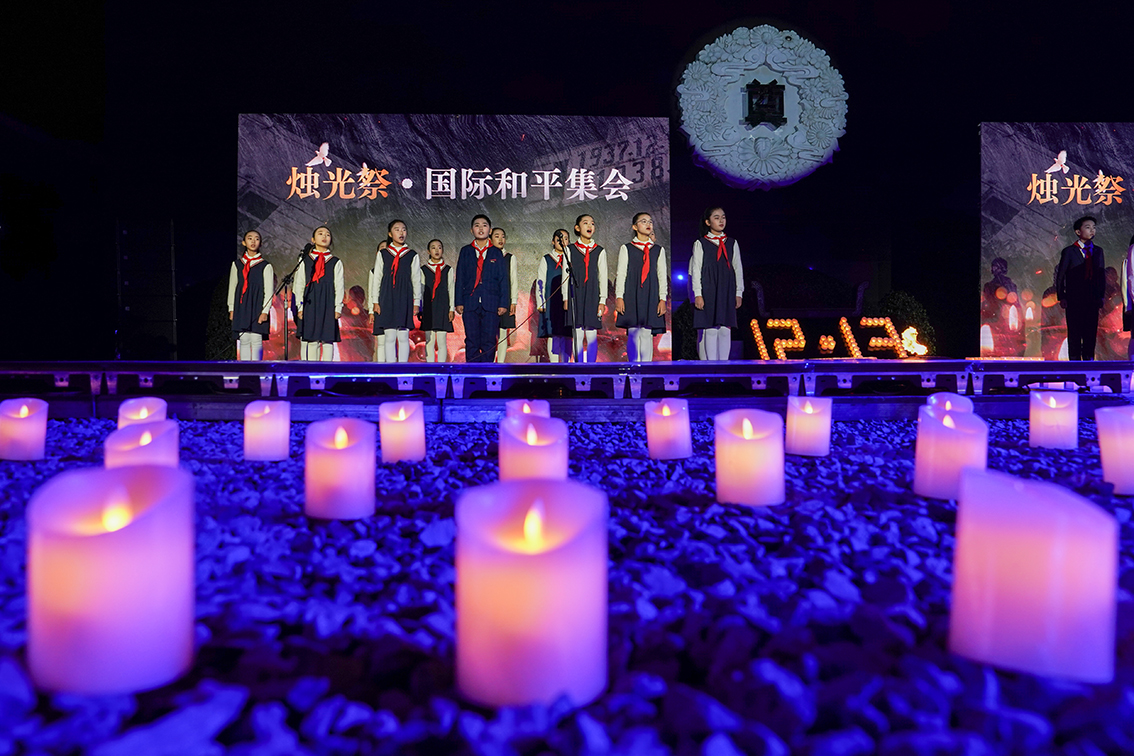 侵华日军南京大屠杀遇难同胞纪念馆13日举行“烛光祭·国际和平集会”,南京大屠杀幸存者后代、医护人员、学生代表等参加活动,寄托哀思,祈愿和平。(图片来源:中新社)