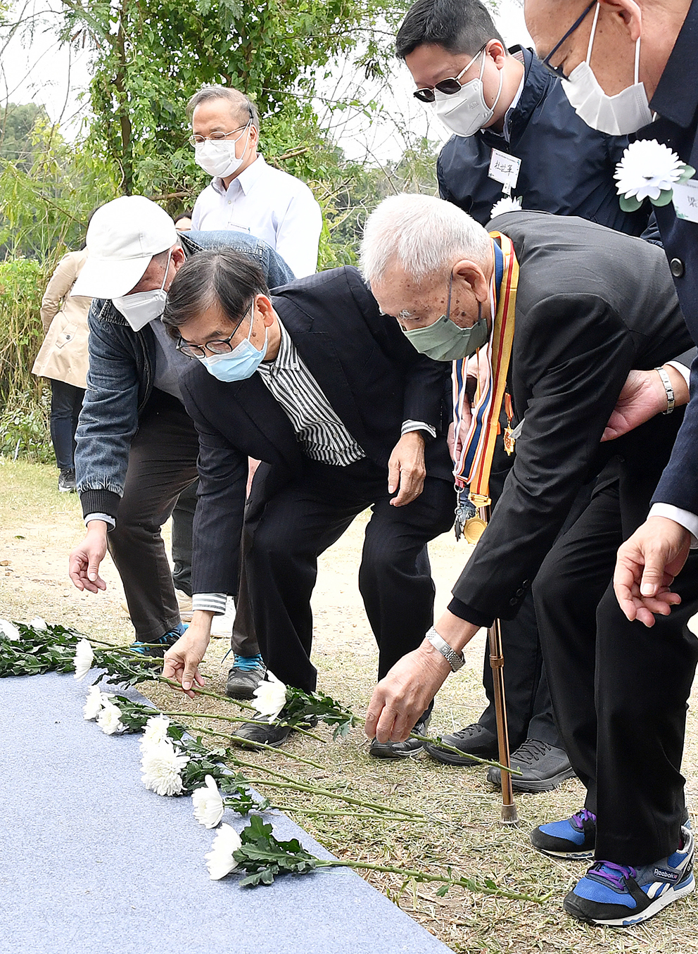 在香港和平纪念林启动仪式上,民众13日为南京大屠杀死难者和日本侵华战争期间的死难者献花。(图片来源:新华社)