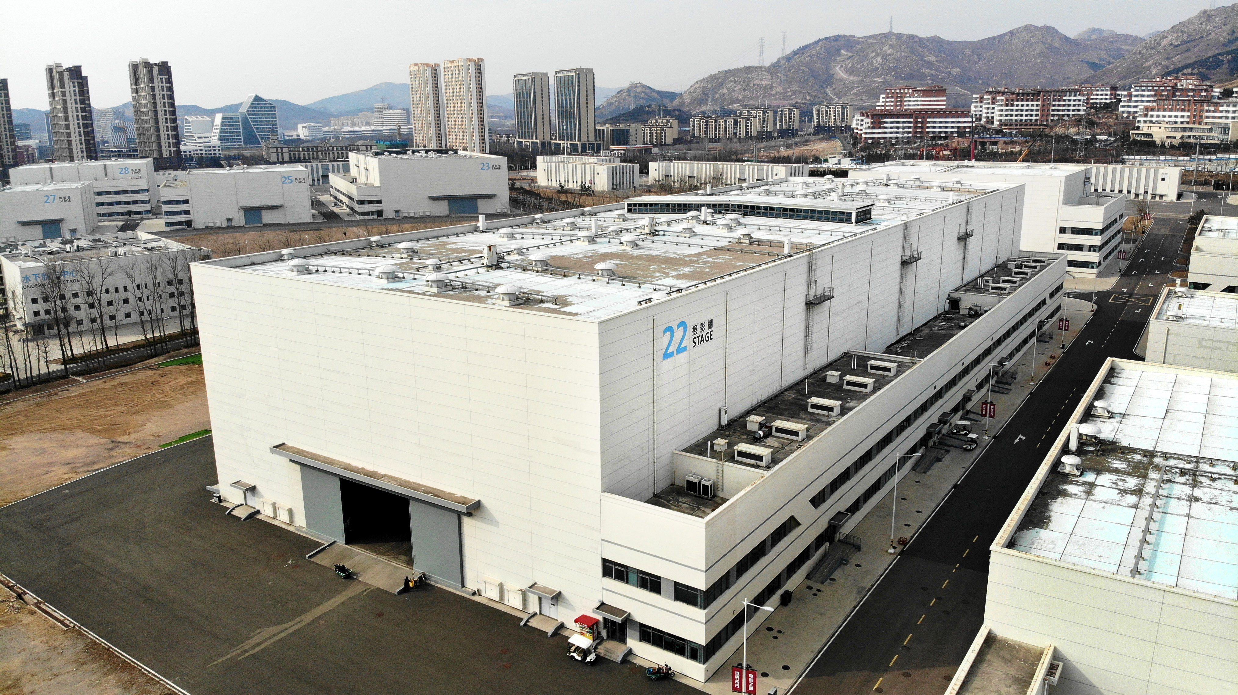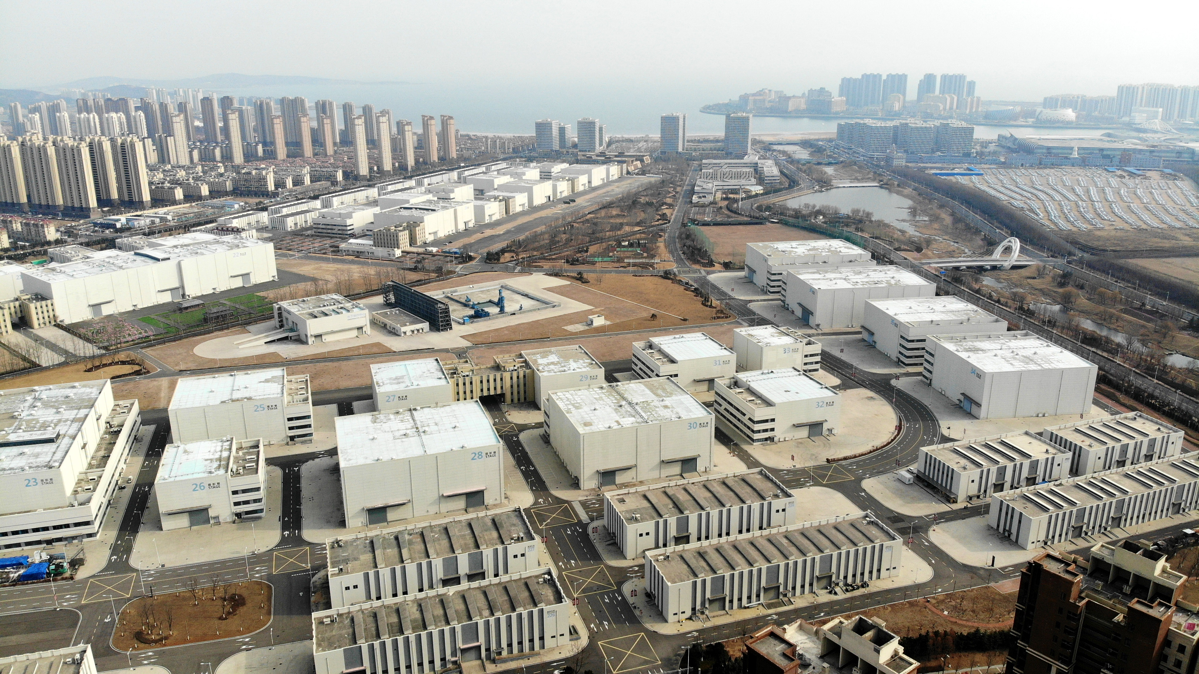 位于青岛西海岸新区的青岛东方影都影视产业园(2月8日摄,无人机照片)。(图片来源:新华社)
