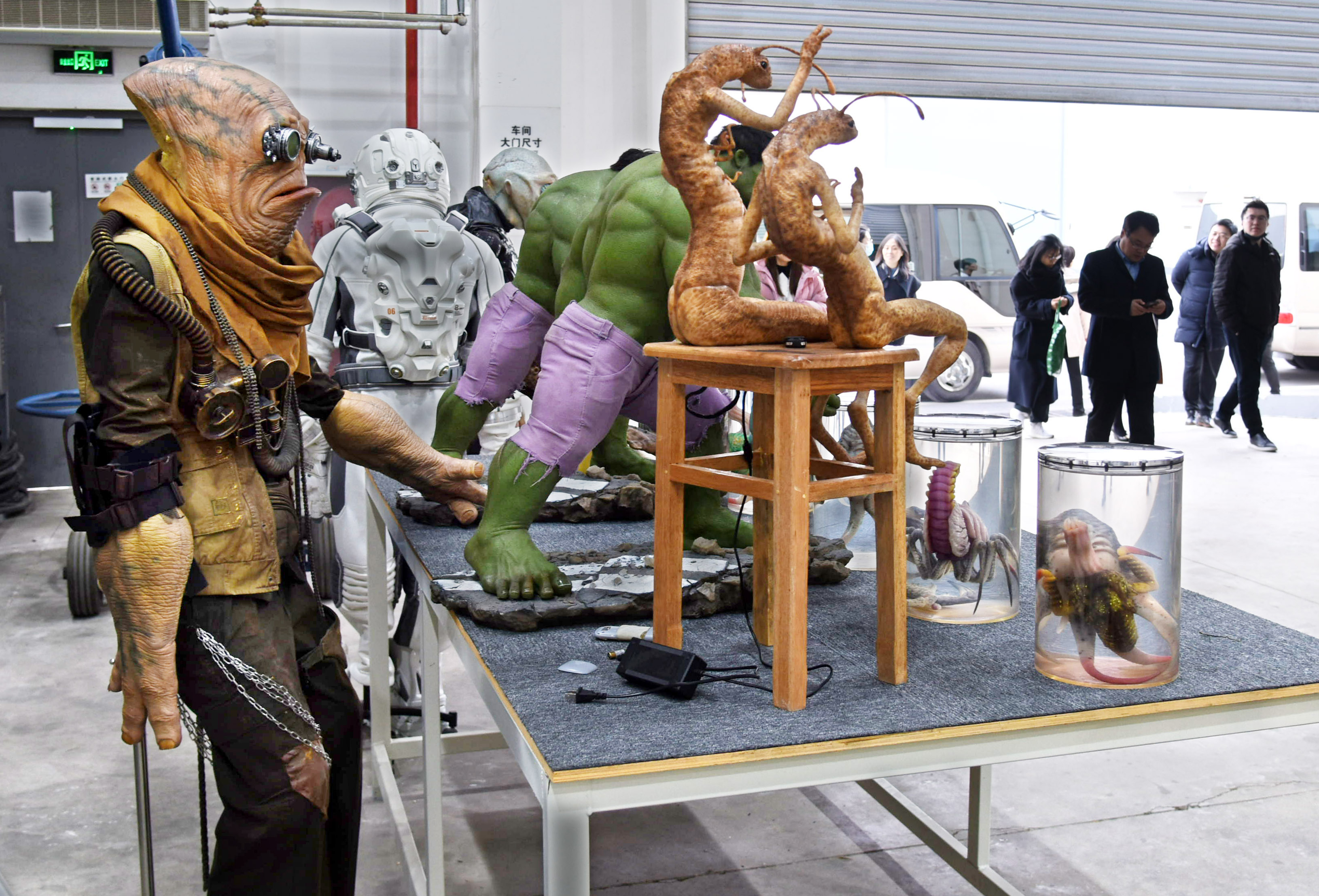 8日,访客在青岛东方影都影视产业园置景车间内参观。(图片来源:新华社)
