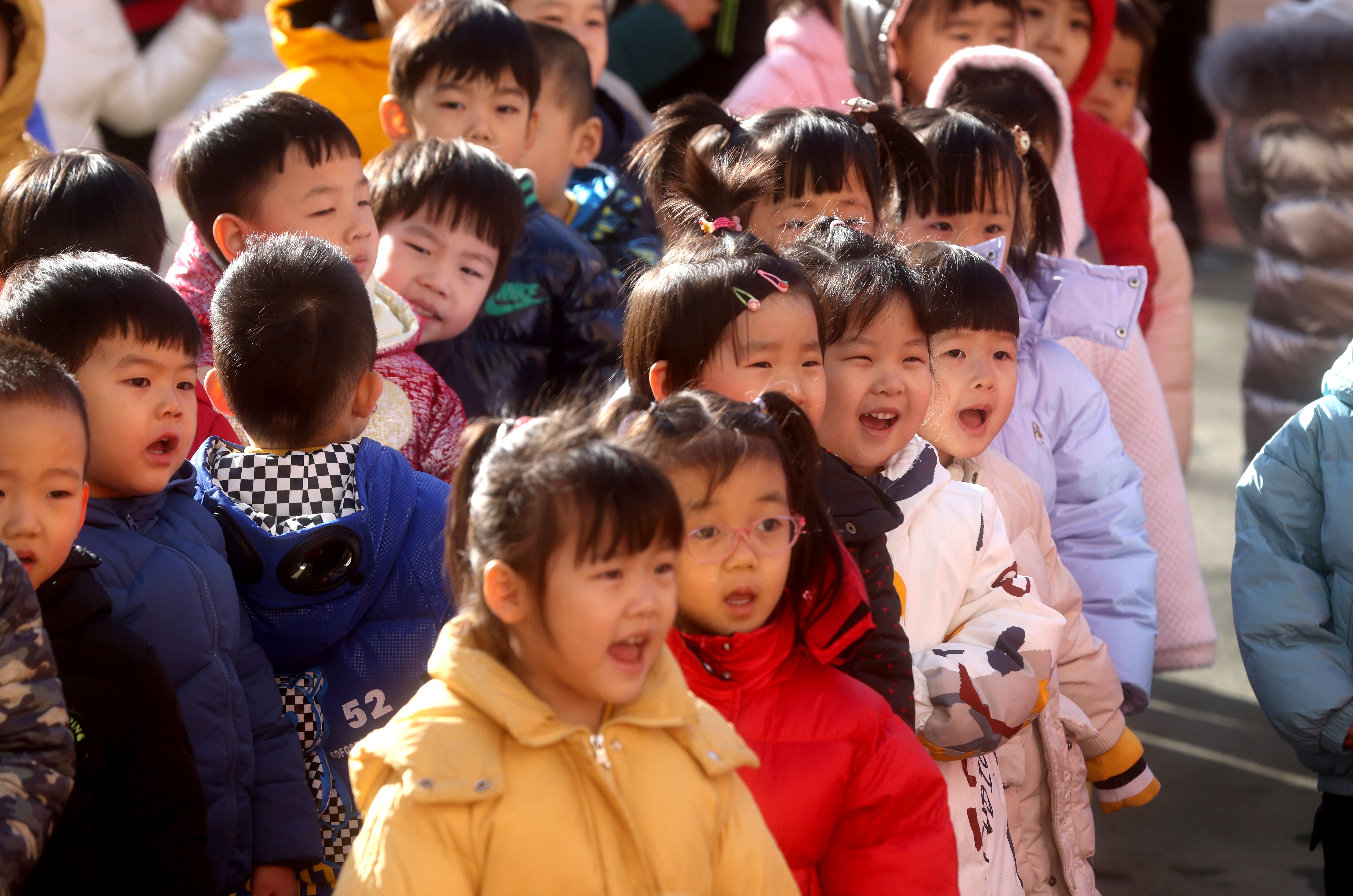 13日,北京市丰台区怡海幼儿园的小朋友参加开学典礼。当日,北京市160余万中小学生重返校园,迎来新学期。