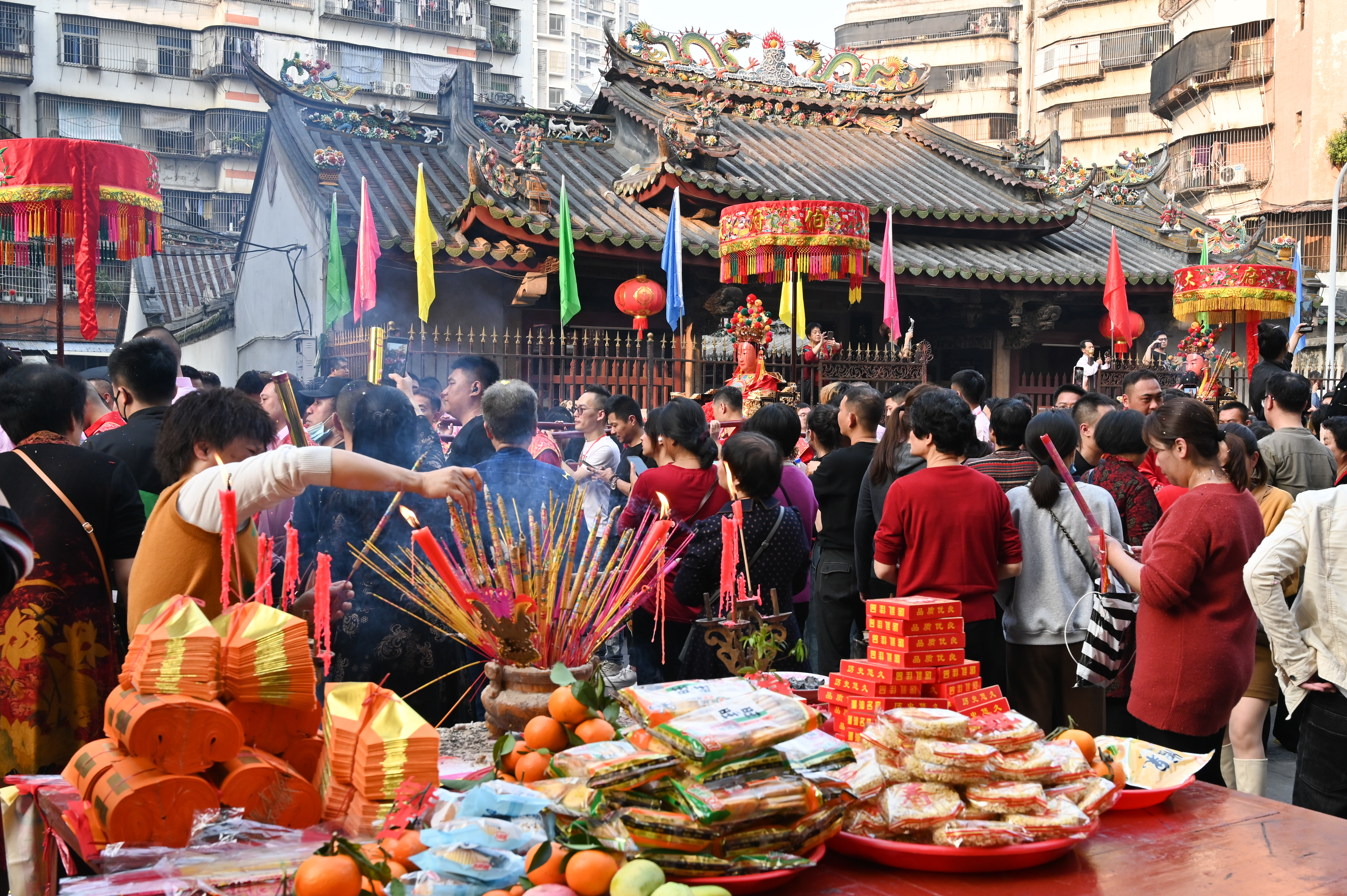 2月13日,广东省揭阳市举行“城隍庙会”,现场英歌舞、舞狮、舞龙、镖旗锣鼓等民俗表演轮番上演,吸引市民游客驻足观看。