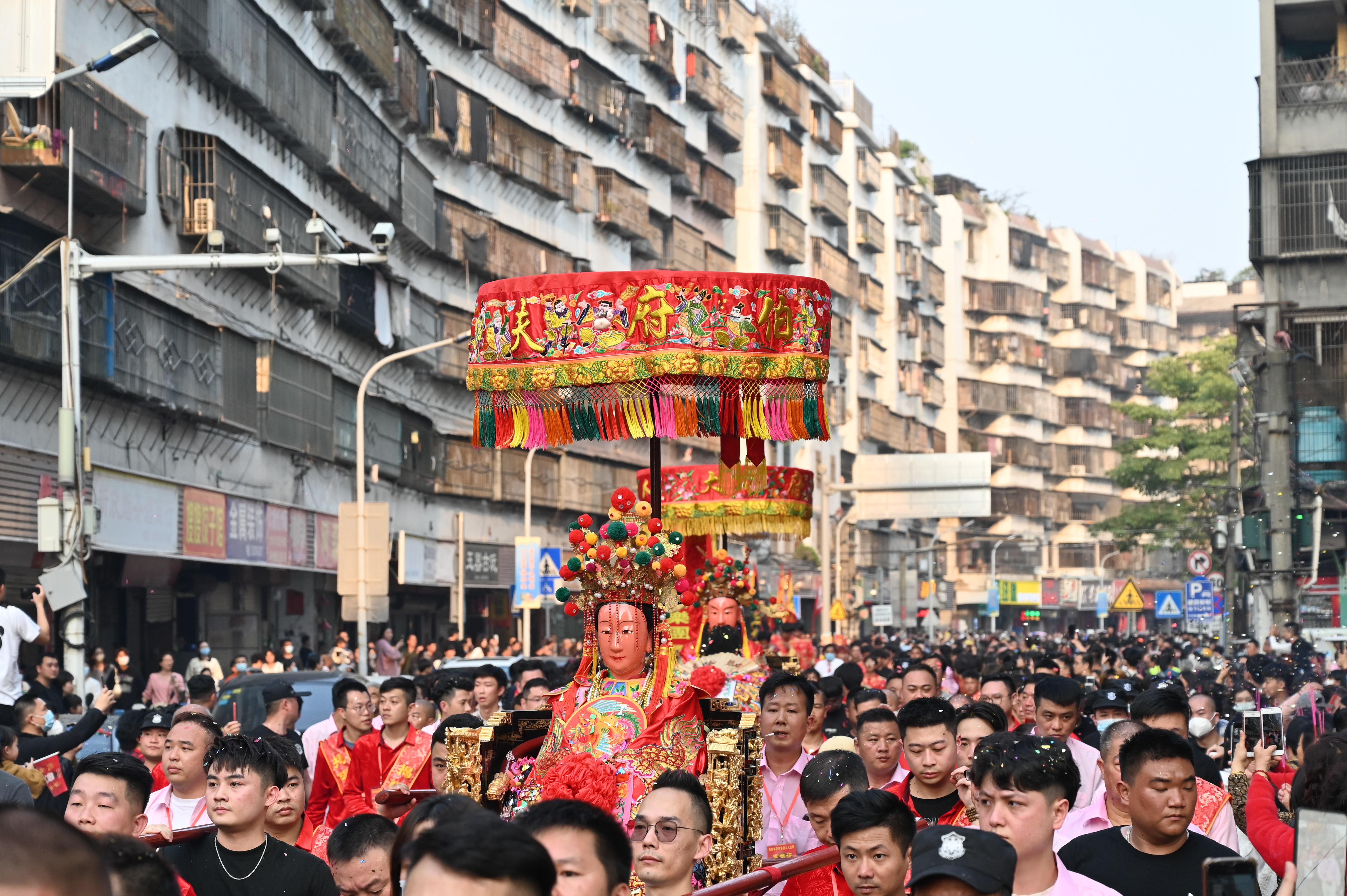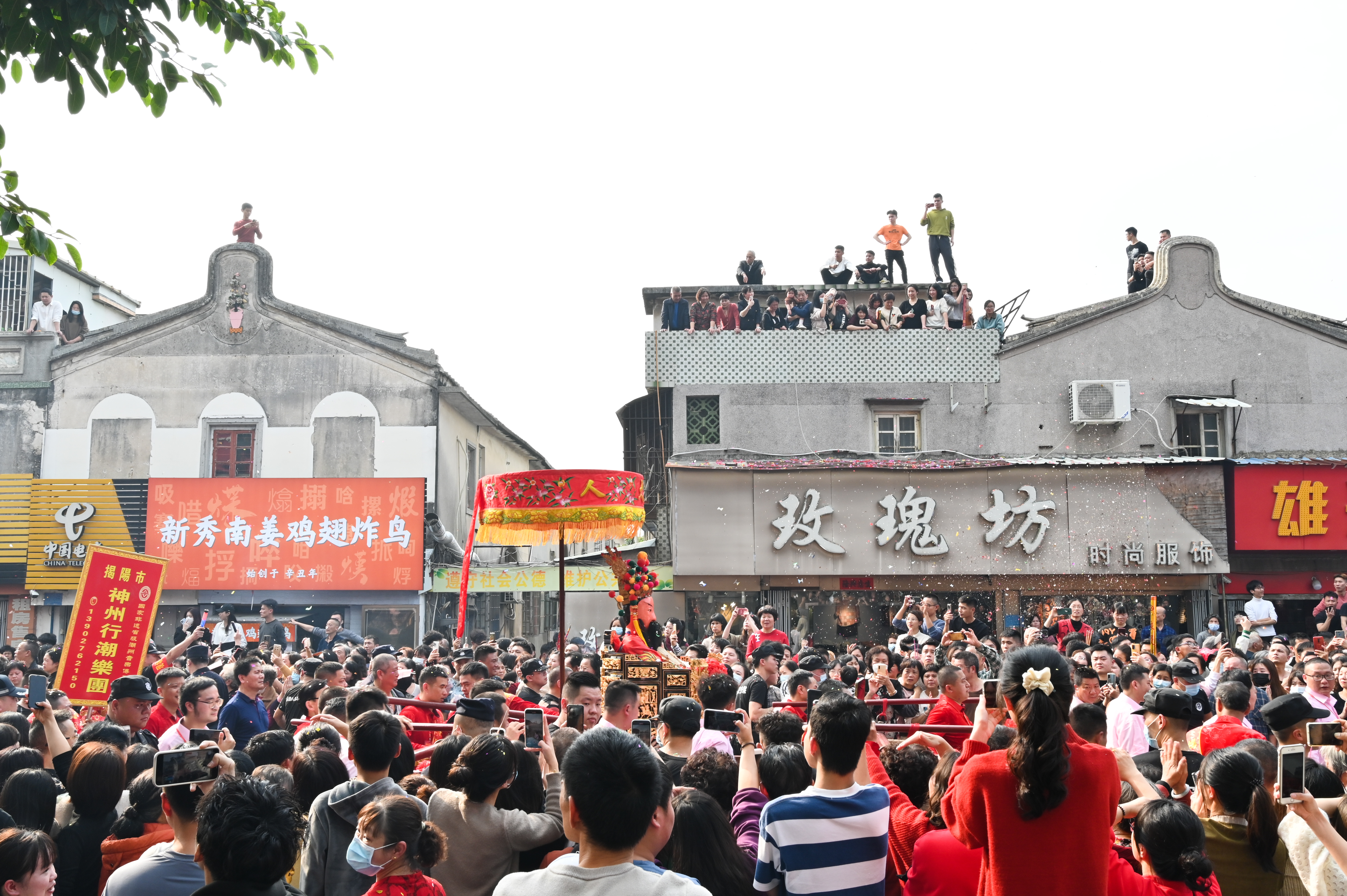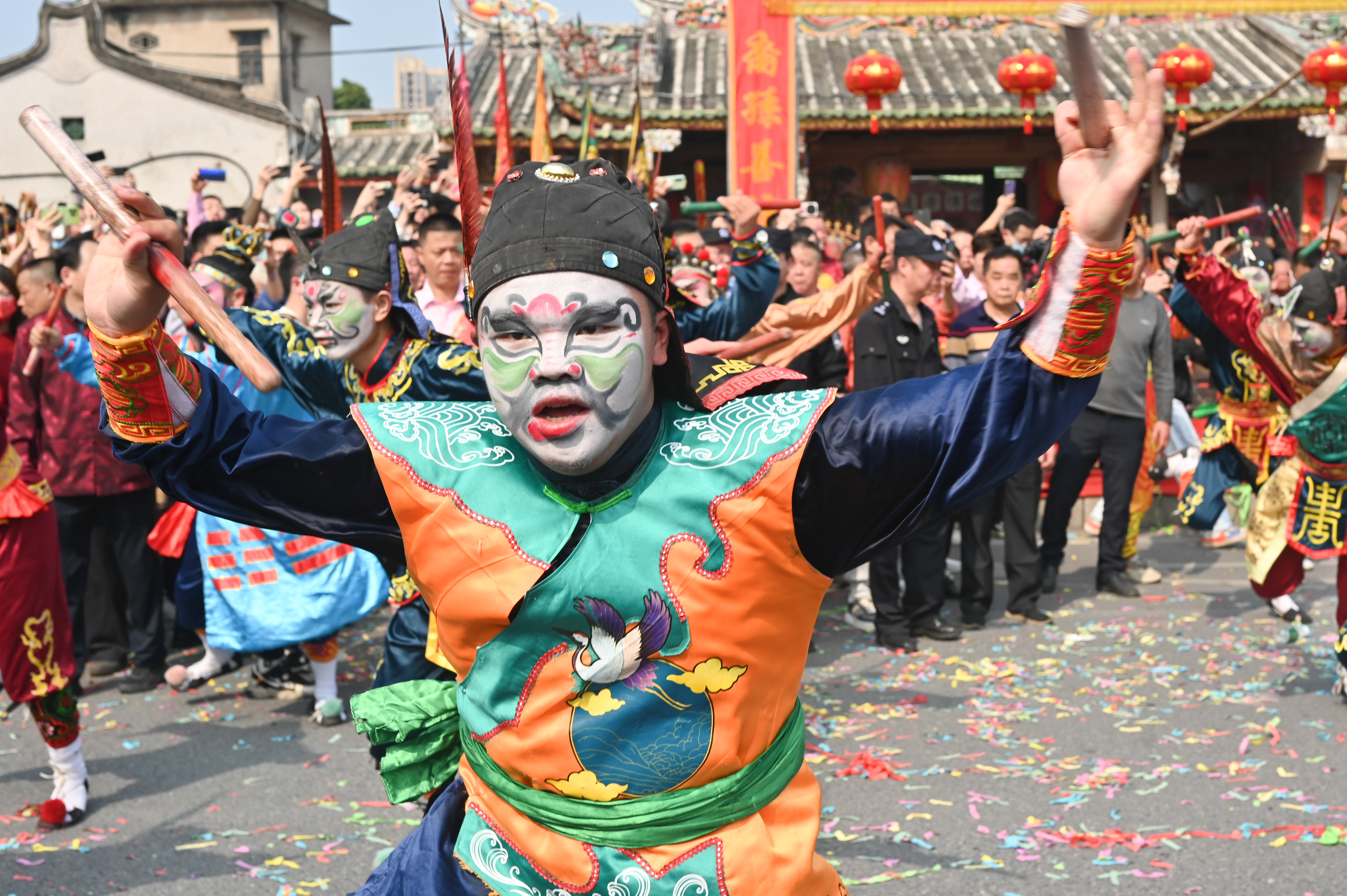 13日,广东省揭阳市举行“城隍庙会”,现场英歌舞、舞狮、舞龙、镖旗锣鼓等民俗表演轮番上演。