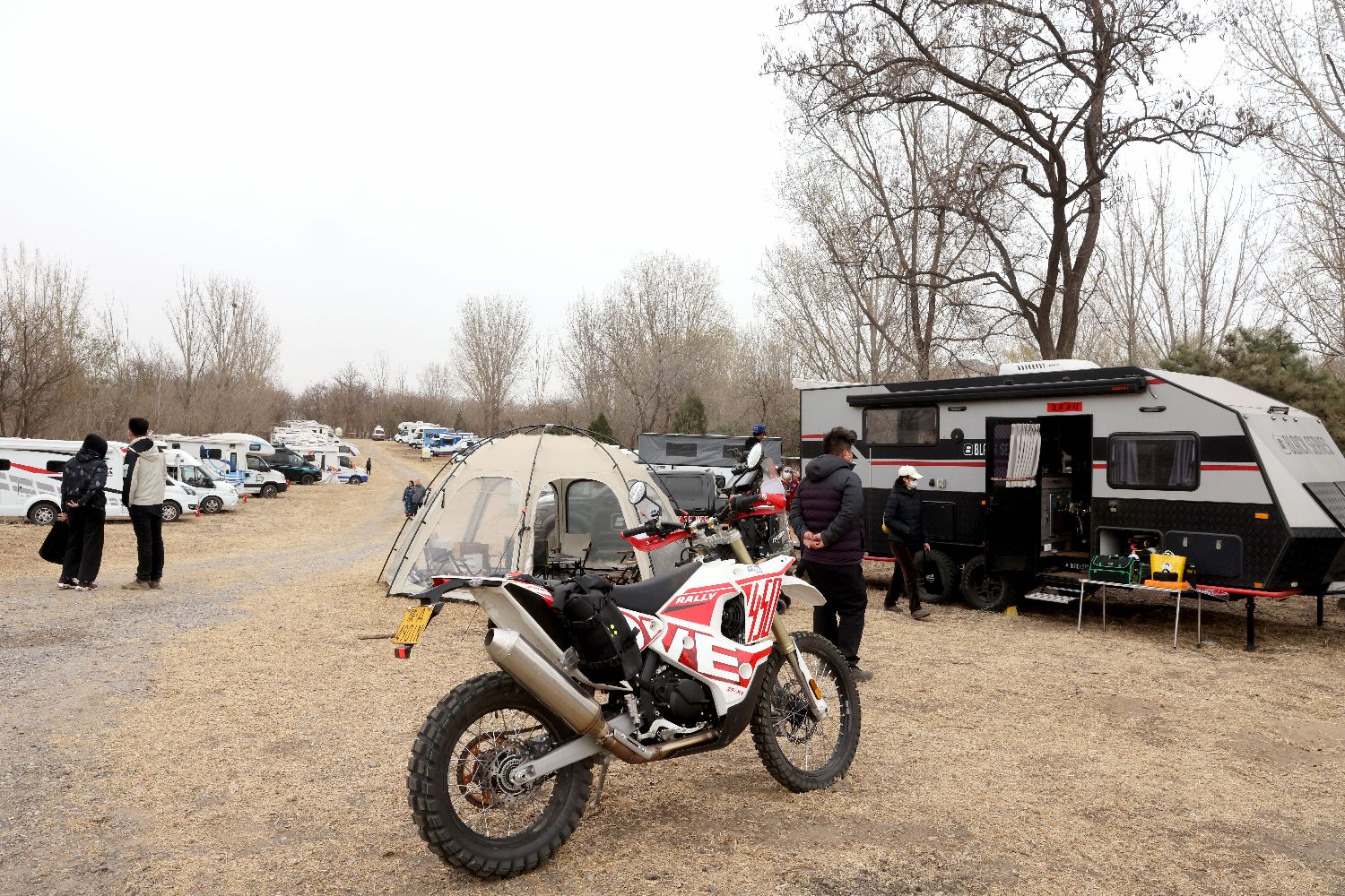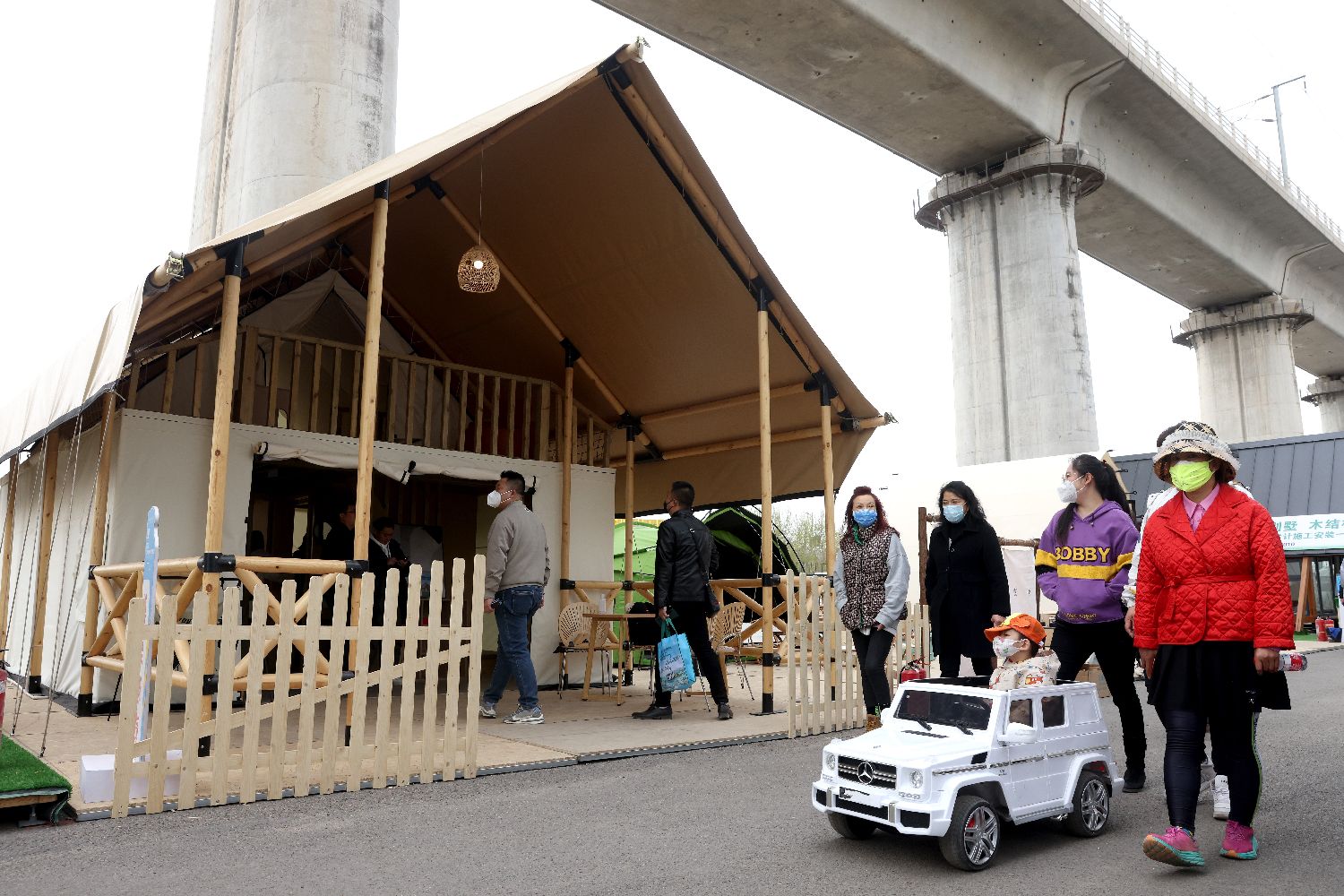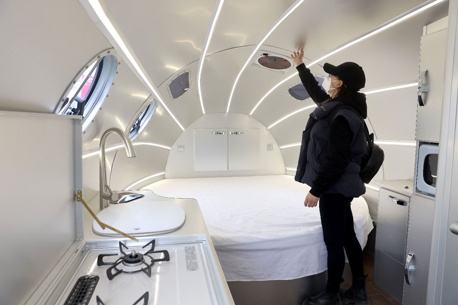 23日,房车爱好者在展会上露营。(图片来源:中新社)