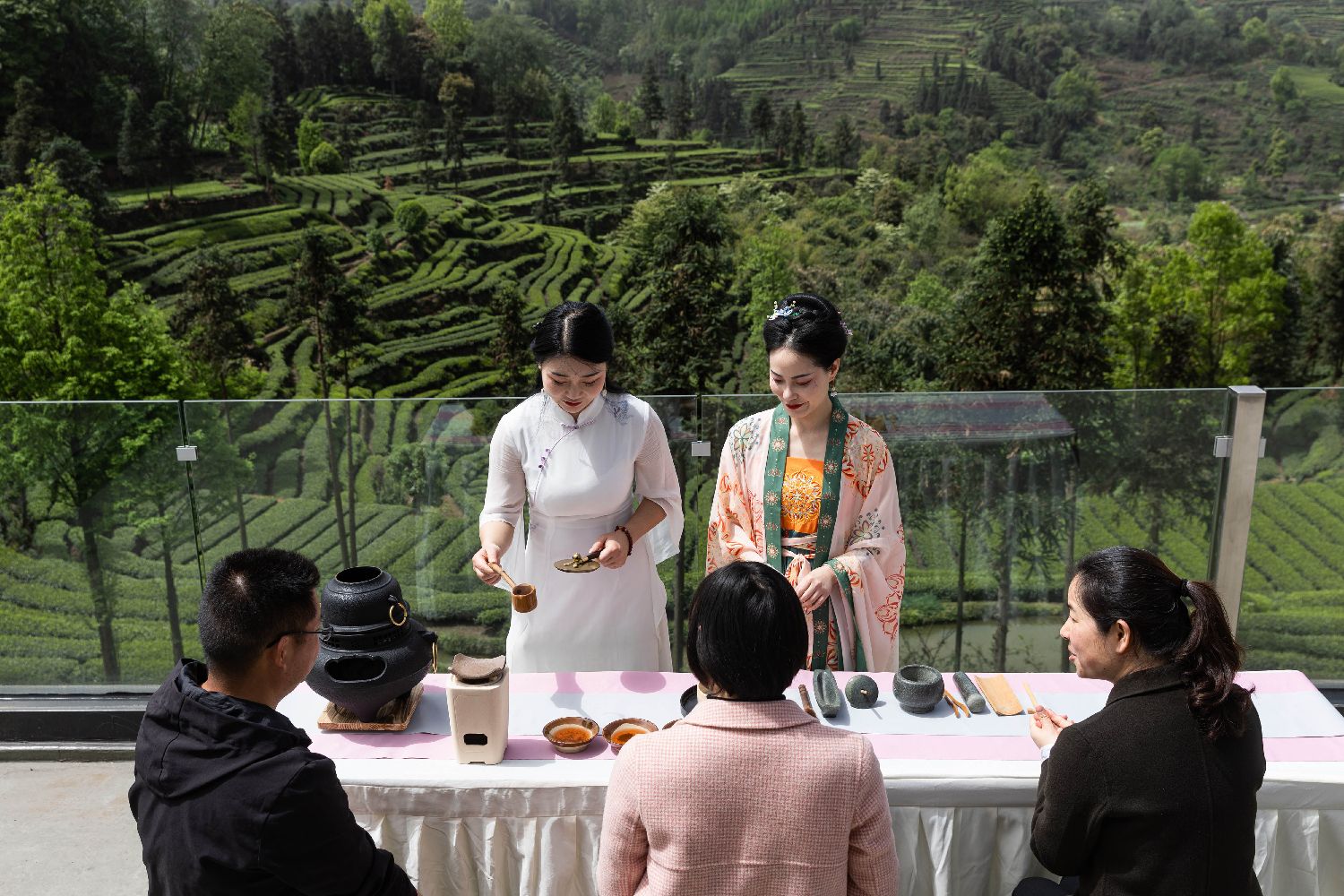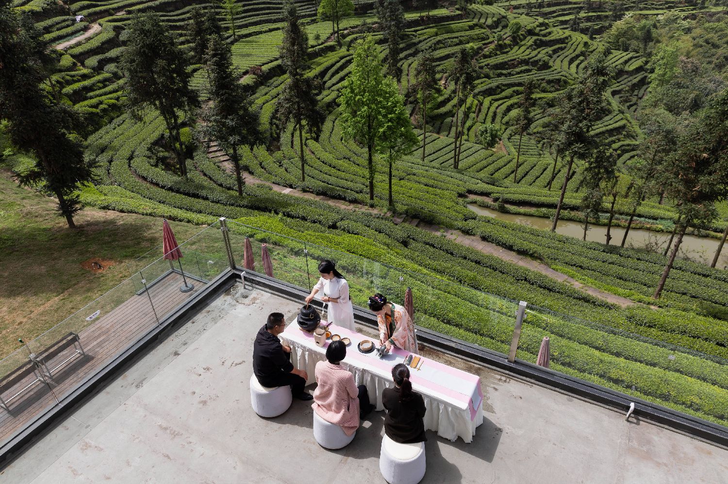 近日,四川省洪雅县止戈镇青杠坪村的村民们忙着在茶园里采摘茶叶鲜叶。近年来,青杠坪村立足万亩生态茶园资源禀赋,打造“青杠坪·茶客空间”农旅融合景区,为游客提供采茶体验、茶园研学、住宿餐饮等服务,经营两年来,景区累计接待游客总数39万人次。