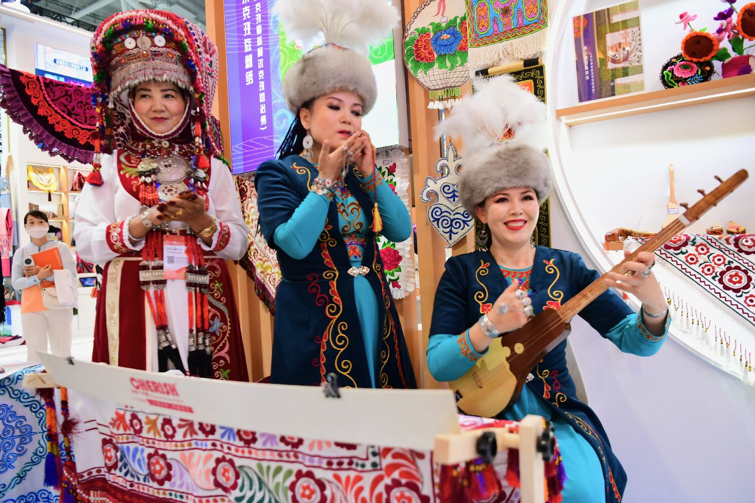 图为柯尔克孜族民族乐器“库姆孜”。