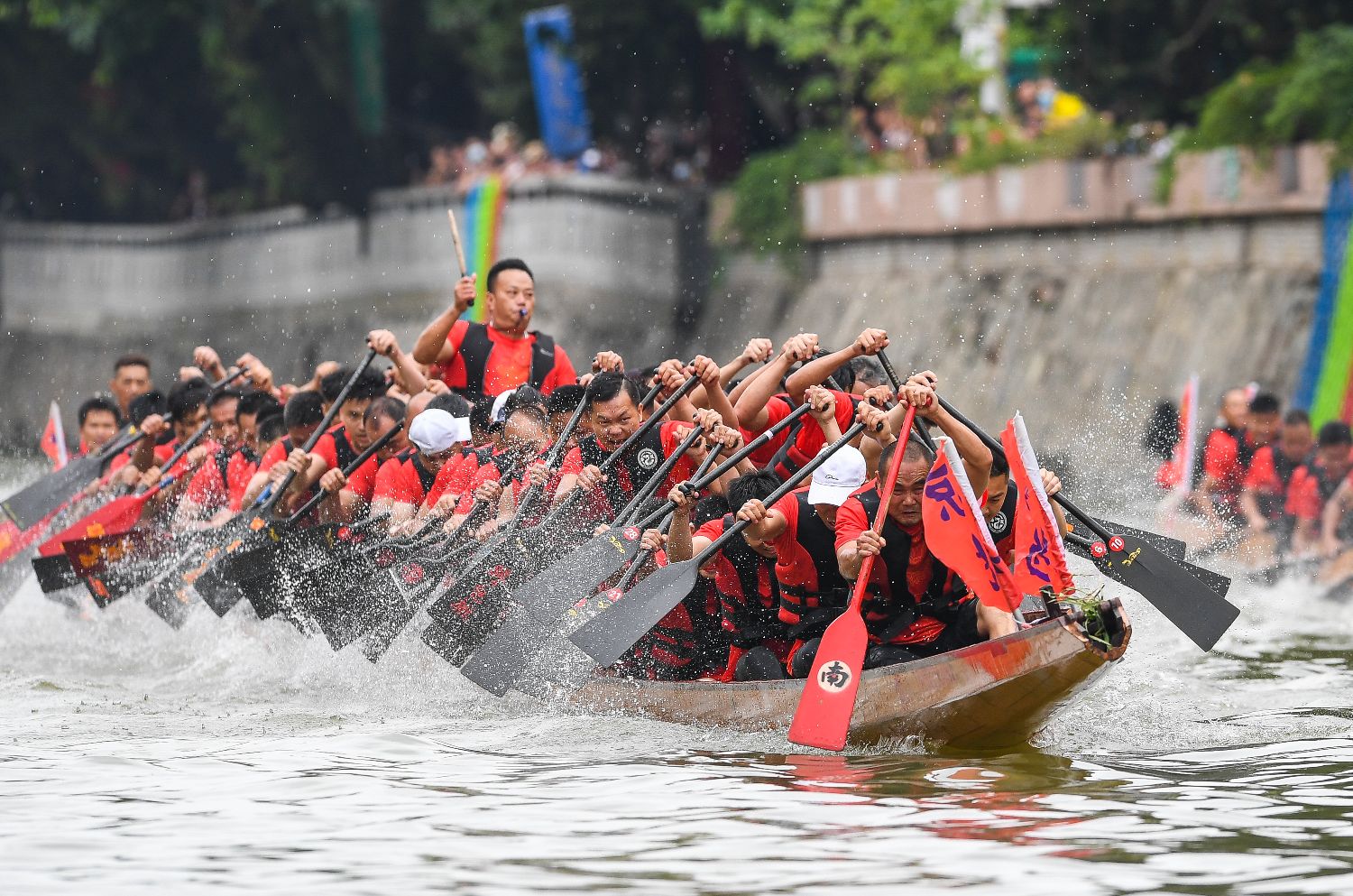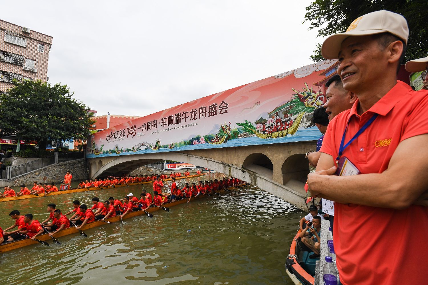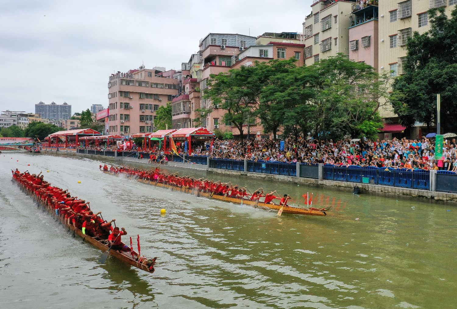 自农历四月初八“起龙舟”开始,广州地区就开启了划龙舟、迎端午的年度大戏。6月15日,车陂村12条龙船在车陂涌进行龙舟竞渡。广州车陂,是一个有着一千多年历史、20多万常住人口的城中古村,其传承的龙舟文化极具代表性。“车陂龙舟景”被列为广东省级非物质文化遗产名录。