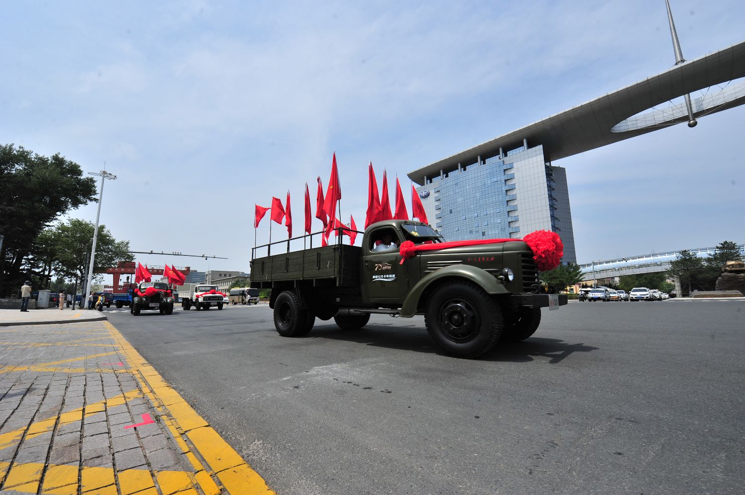 26日,一队由不同年代的解放牌卡车组成的车队行驶在吉林长春街头。