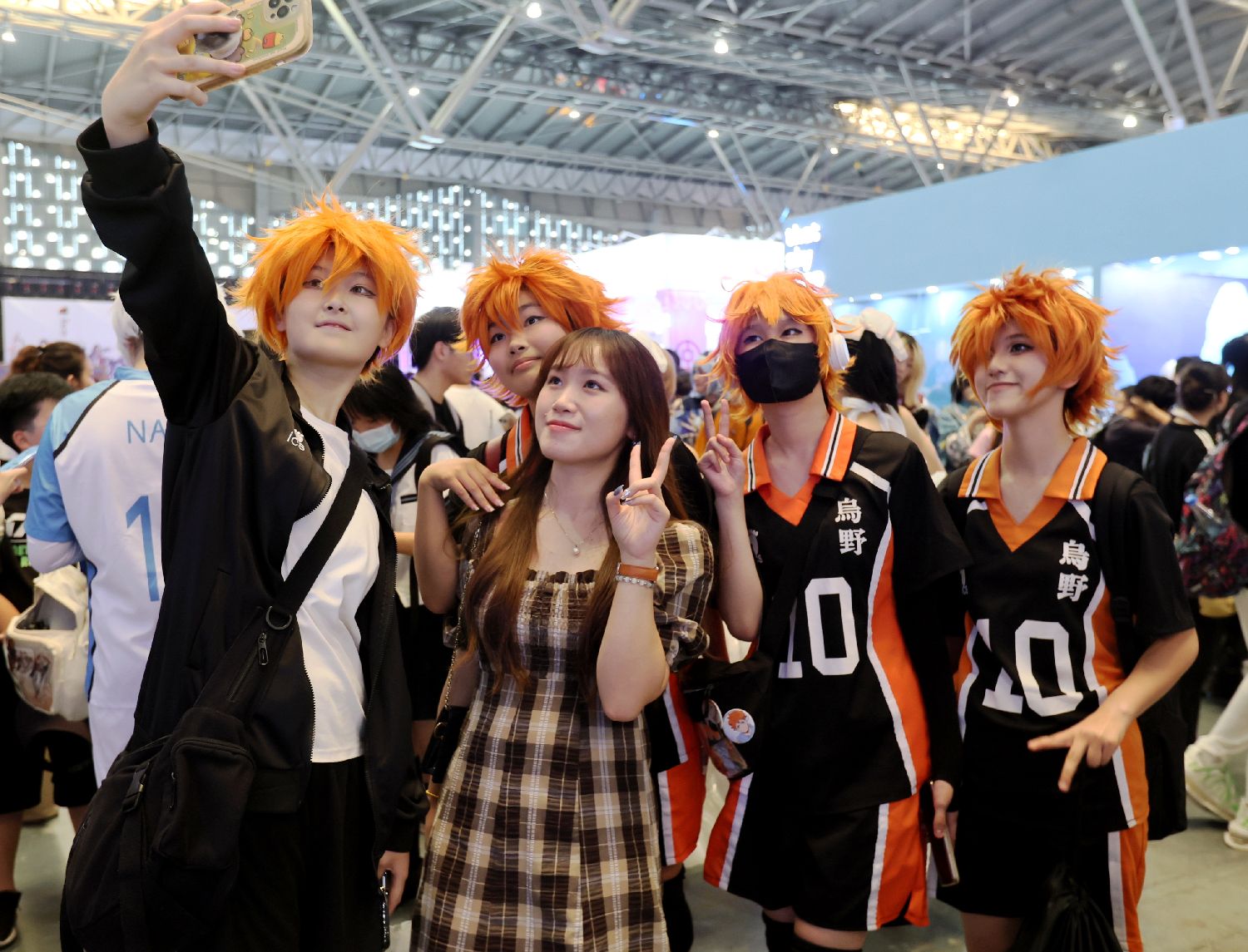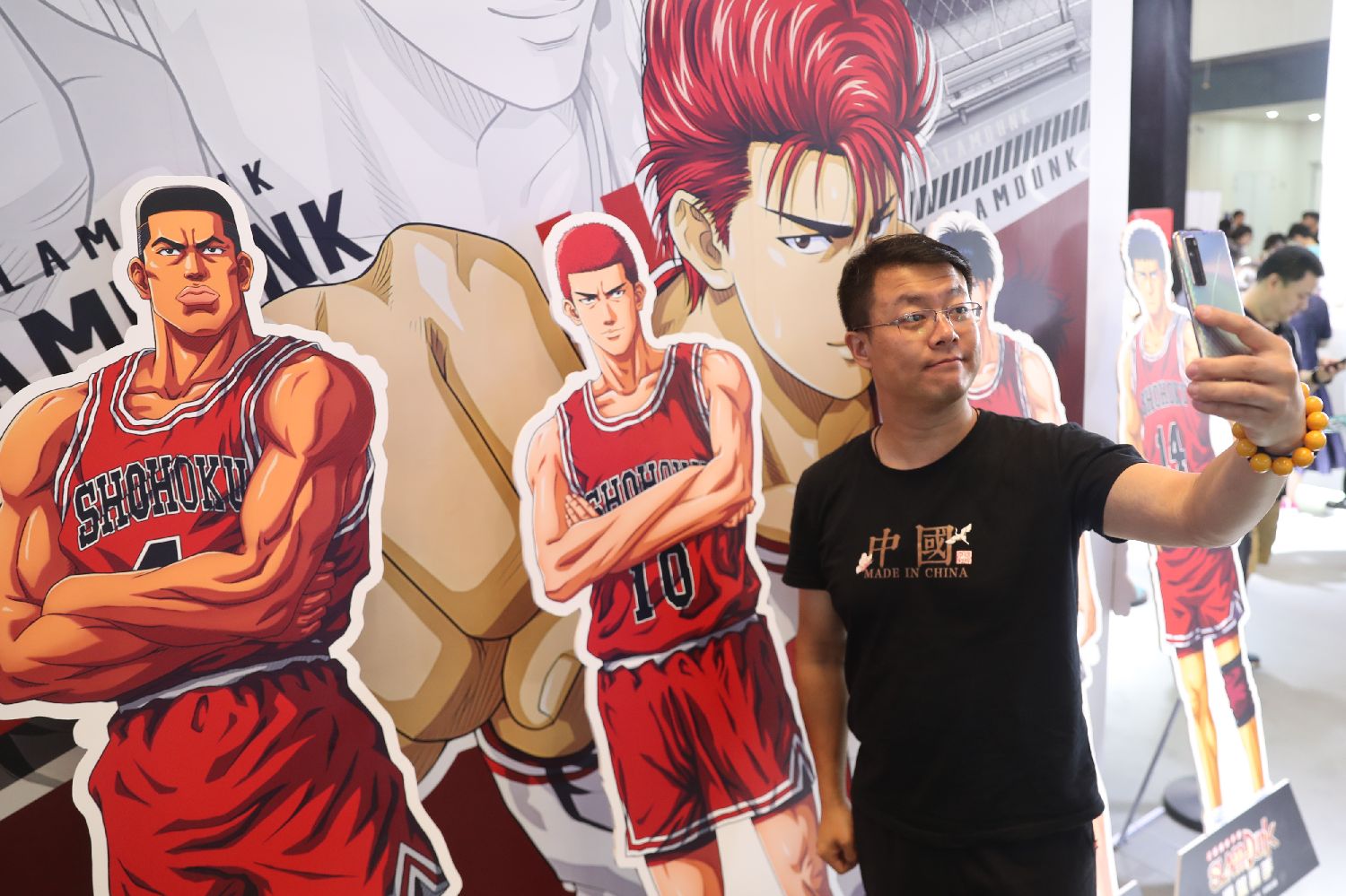 “灌篮高手”吸引观众驻足合影。(图片来源:中新社)