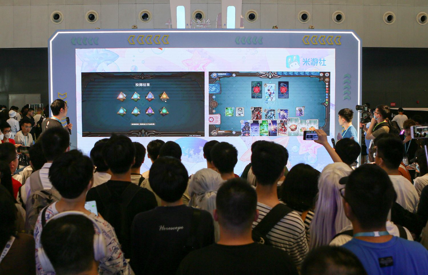 参观者13日在米游社展位观看卡牌对战游戏直播。(图片来源:新华社)