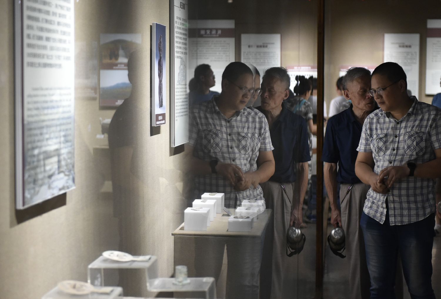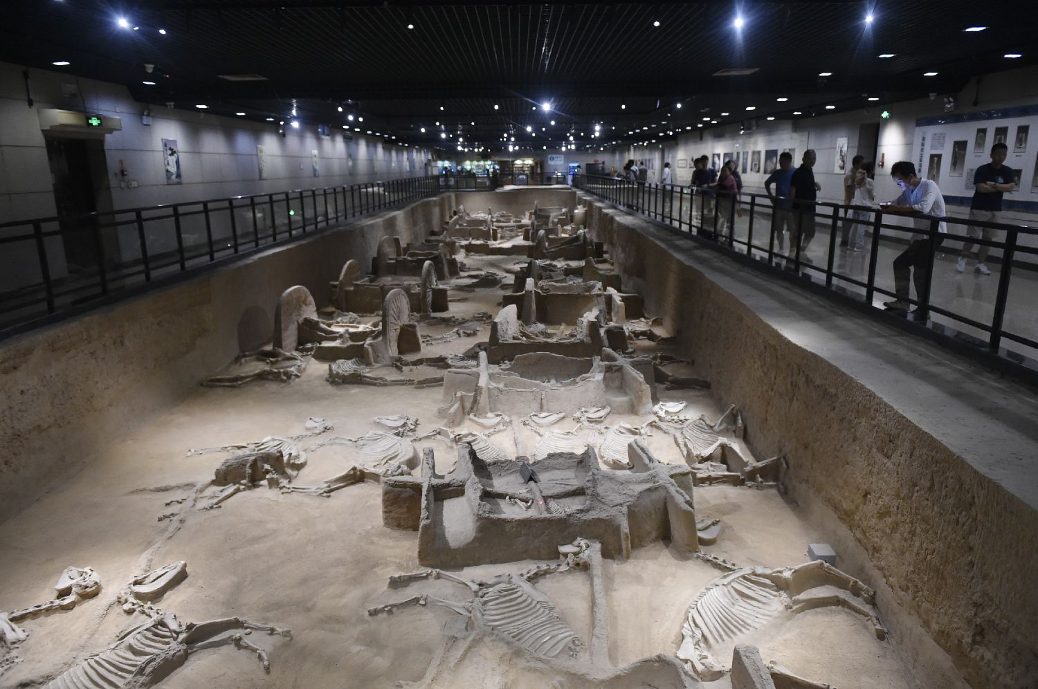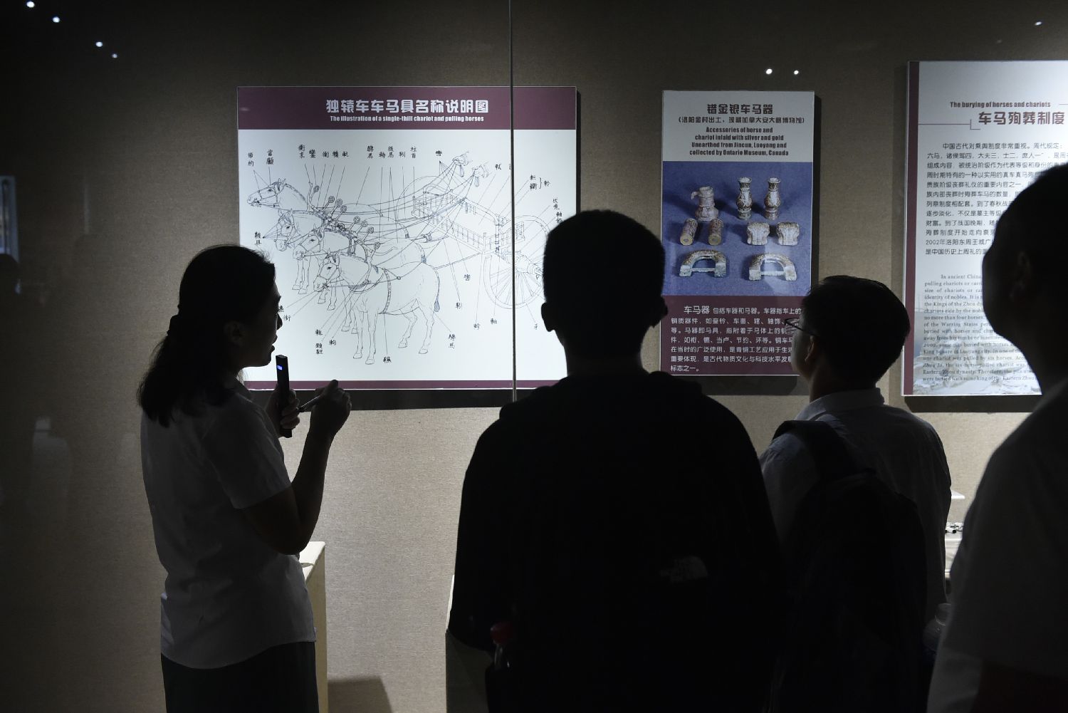 观众20日在洛阳周王城天子驾六博物馆内参观。
