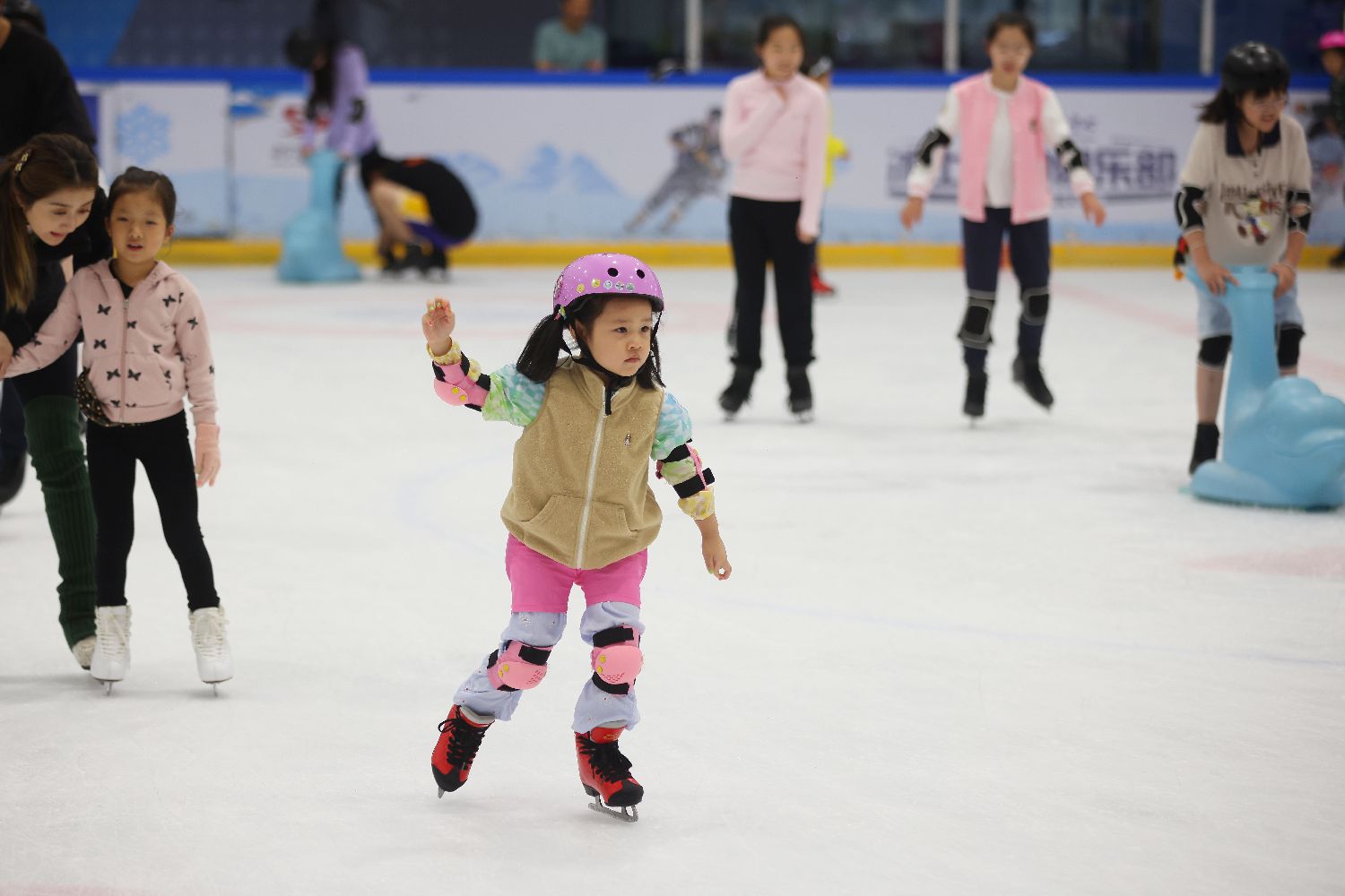 25日,小朋友南京在奥体中心滑冰场练习滑冰。