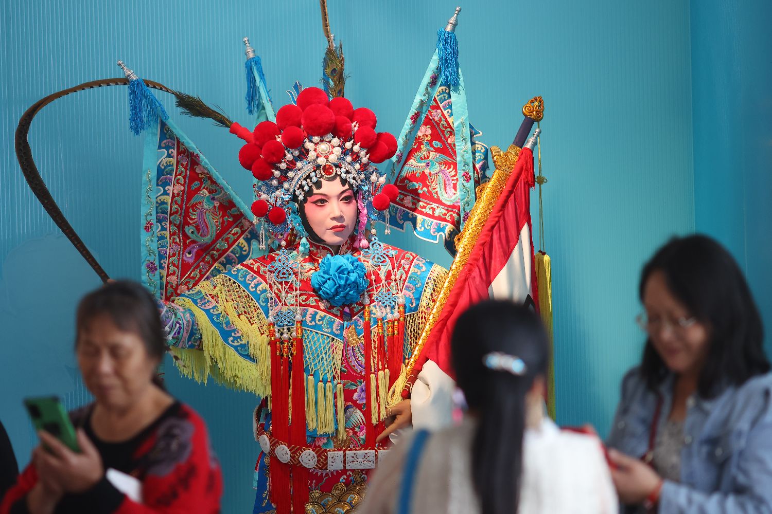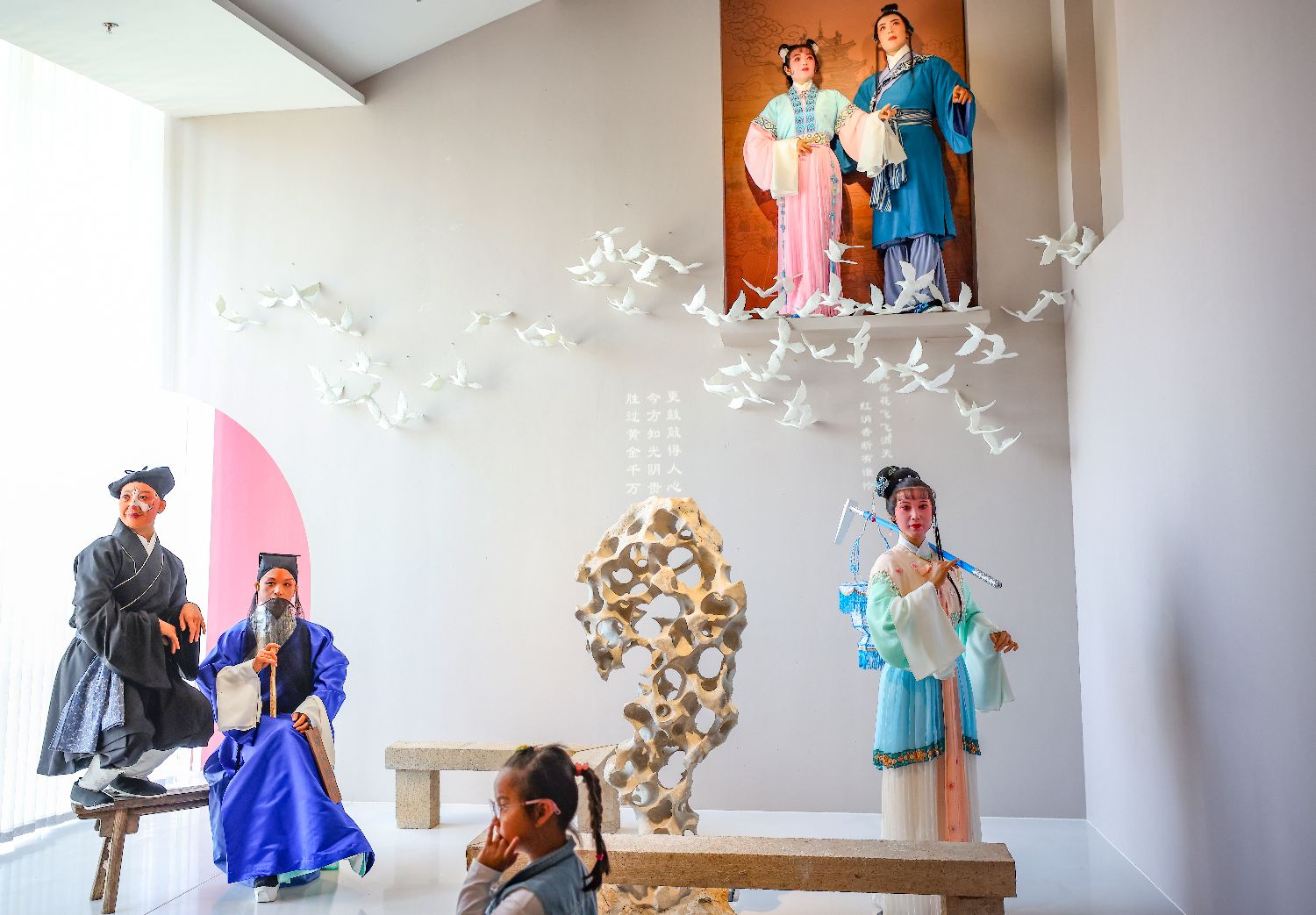 11日,观众在戏曲百戏博物馆内参观戏剧人物展陈。