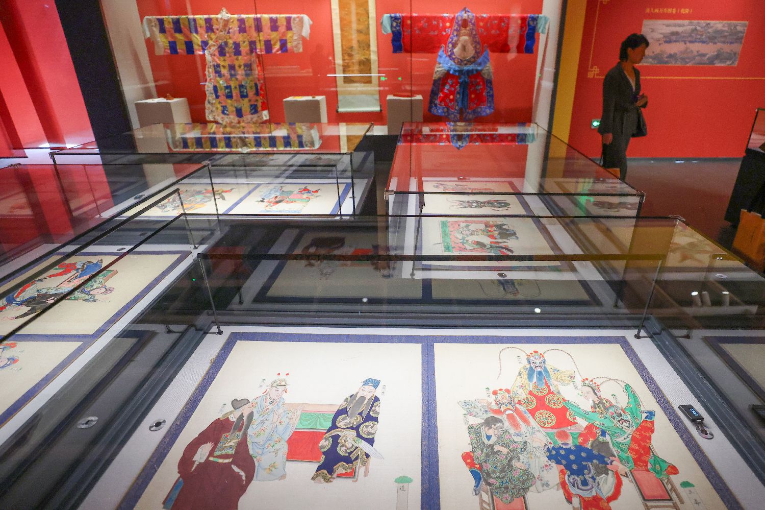 11日,观众在戏曲百戏博物馆内参观“清代宫廷戏剧展”。