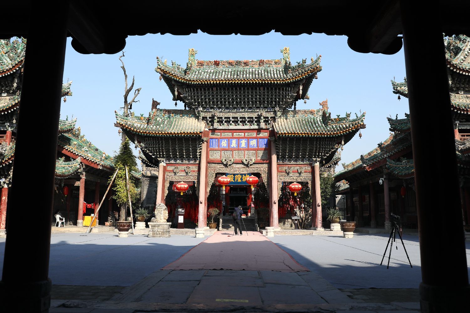 三原城隍庙内有戏楼、鼓楼、寝宫、大殿等建筑,是陕西现存最完整的城隍庙古建筑群。图为城隍庙中轴线。