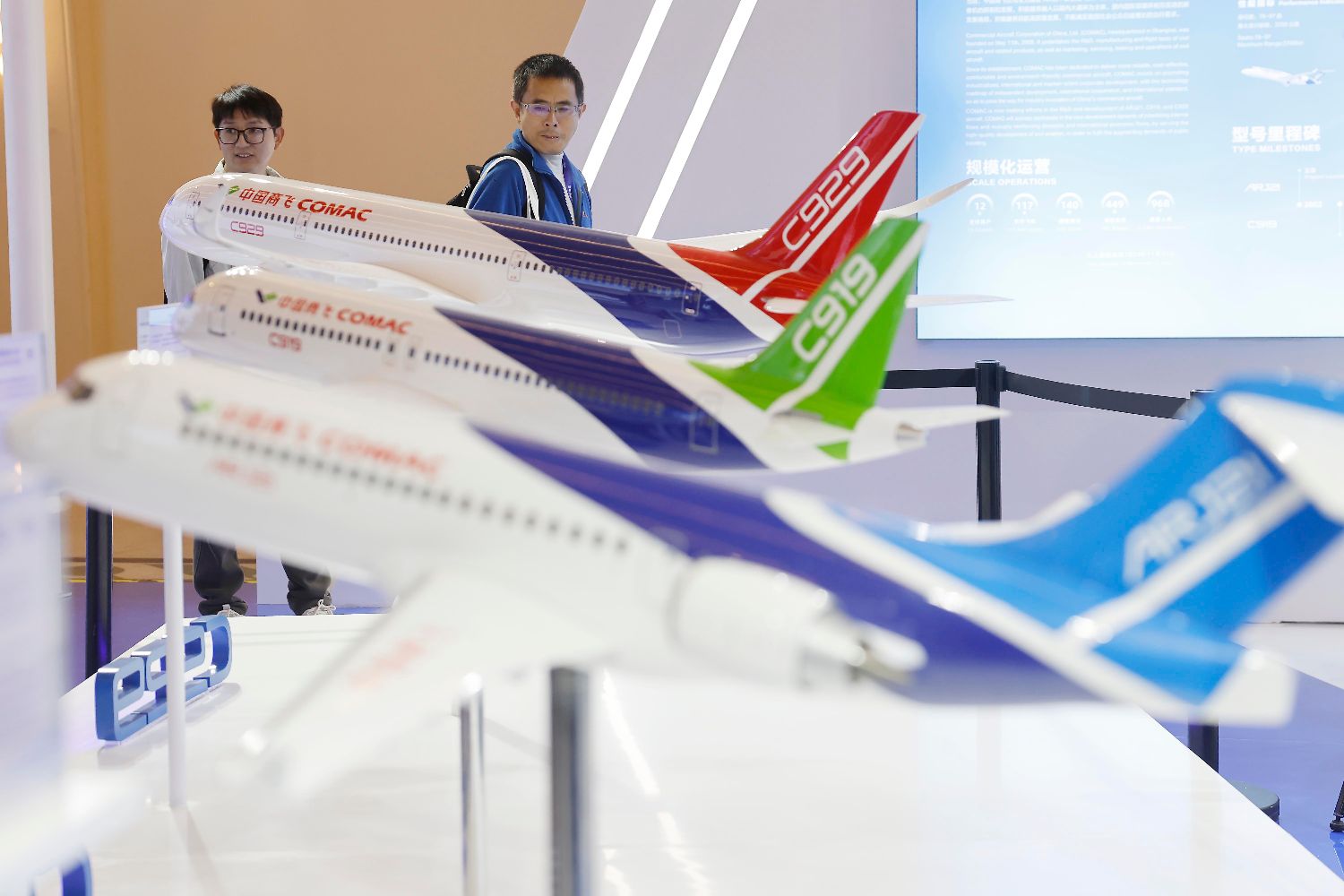 图为参观者了解中国商飞系列飞机。