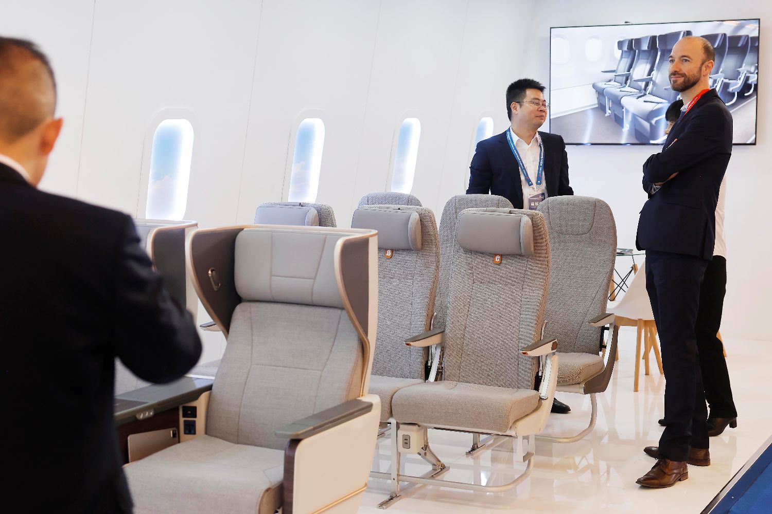 图为参观者了解航宇嘉泰的民航座椅。