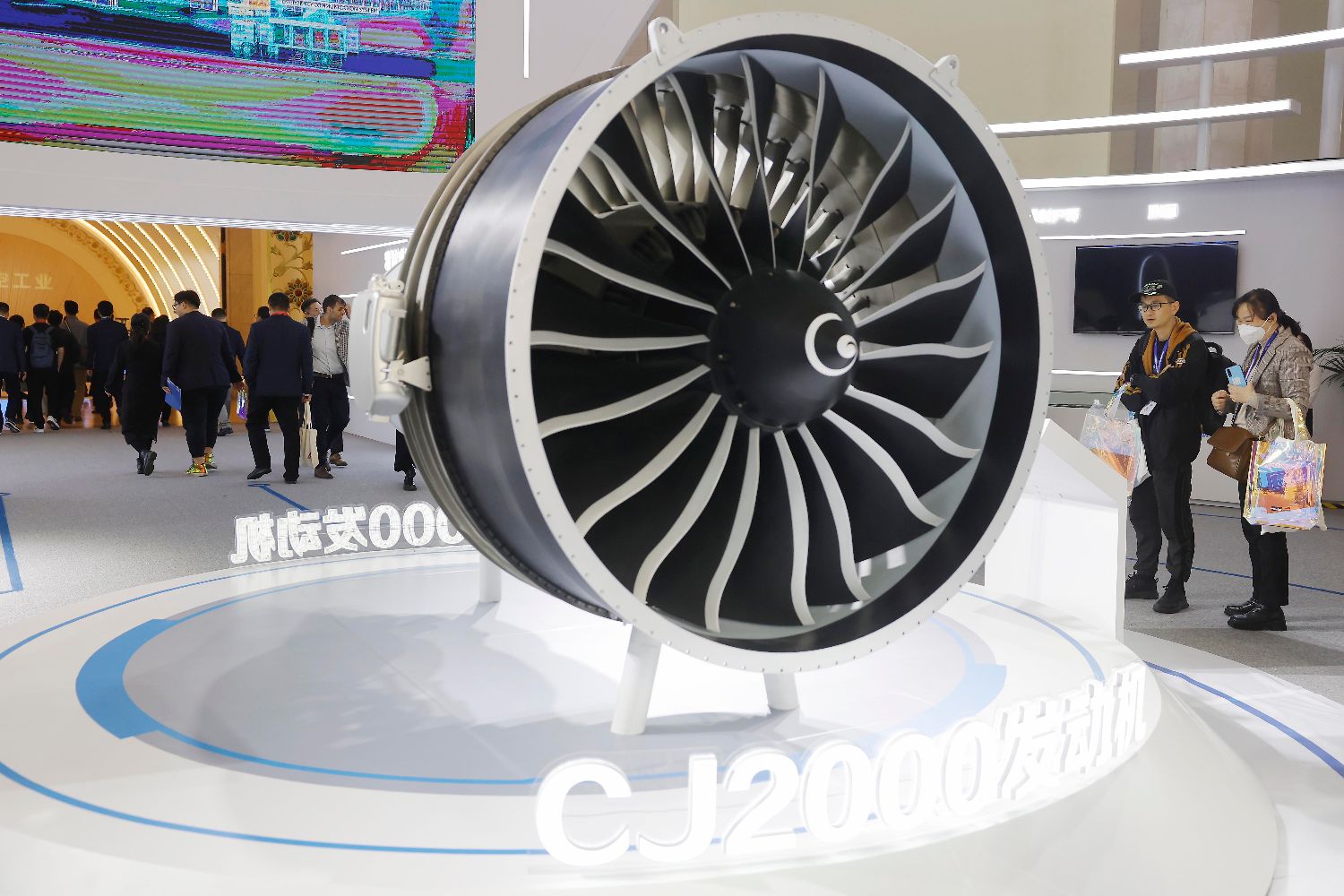 图为参观者了解CJ2000发动机。