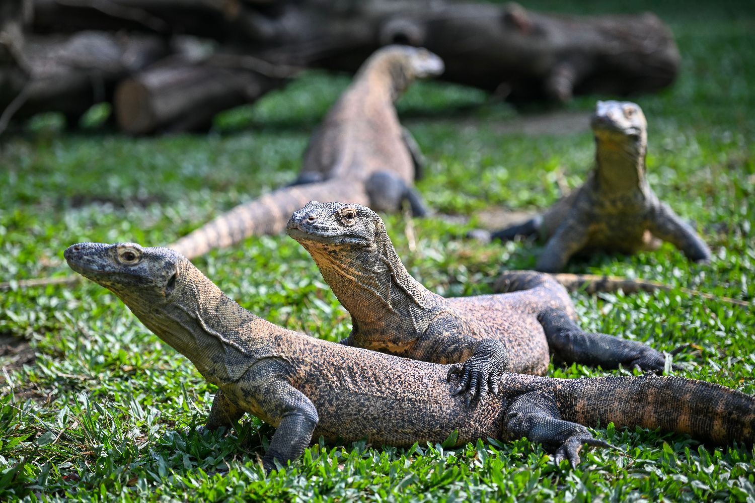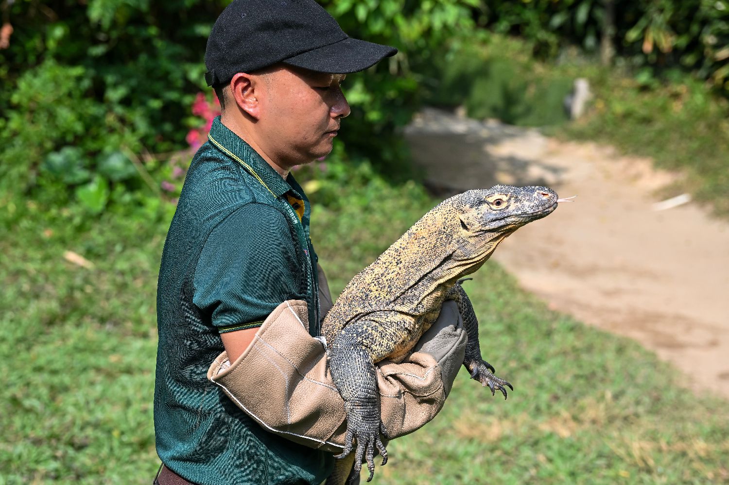 自2020年首次成功繁育以来,长隆科莫多龙家族不断壮大,现在已经拥有29只成员,成为了中国国内最大的科莫多龙种群。图为工作人员抱着科莫多龙幼崽。