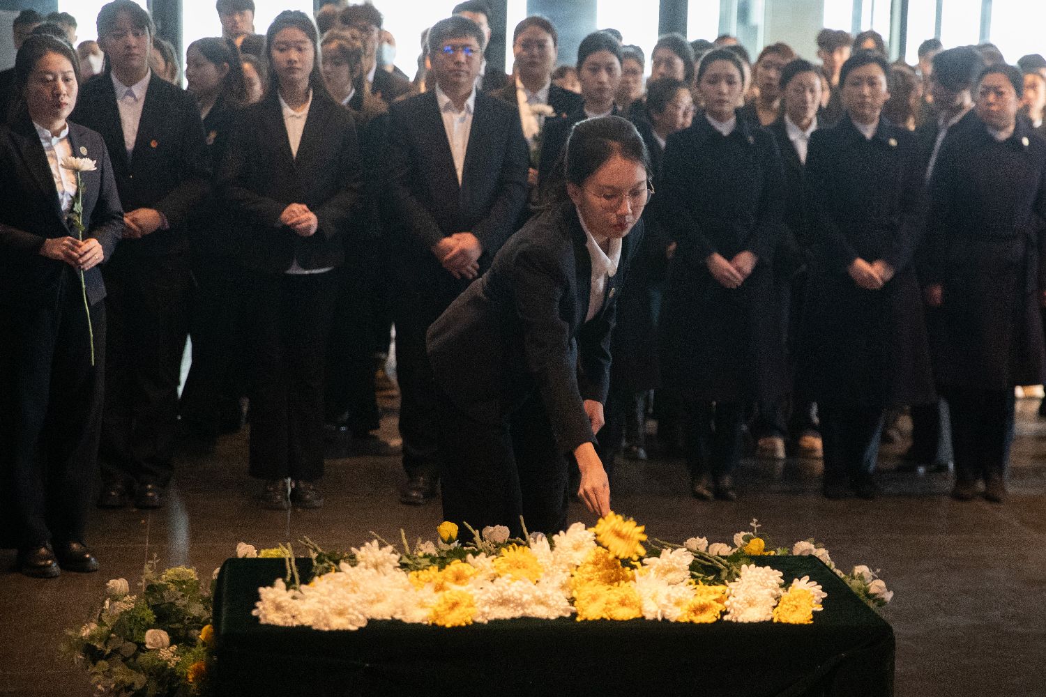 社会各界代表13日来到中国人民抗日战争纪念馆献花,缅怀死难同胞。