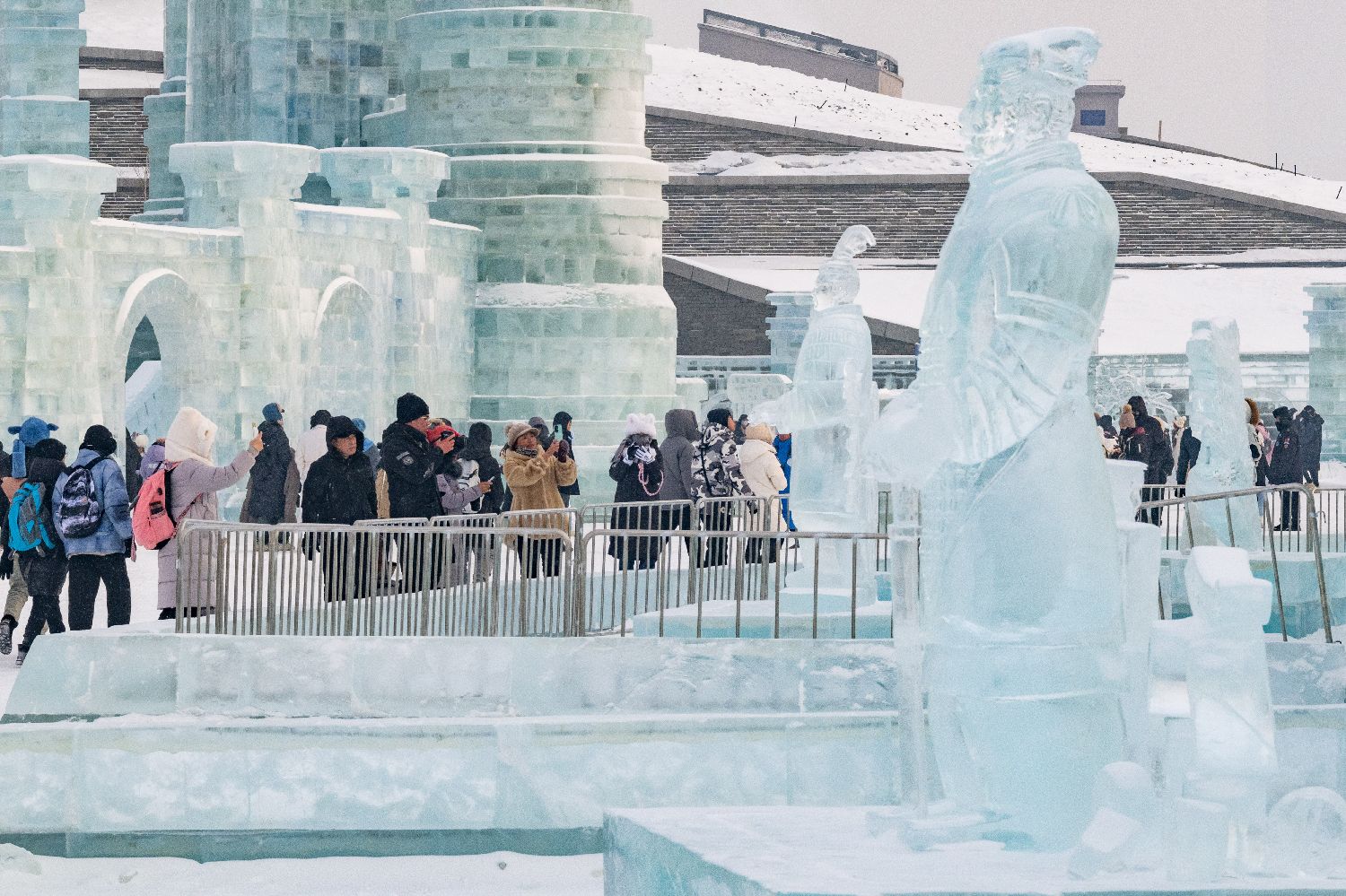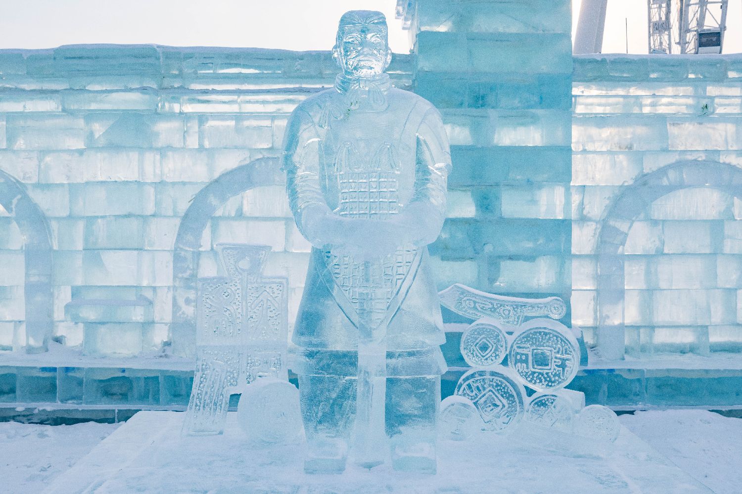 冰雕版“兵马俑”亮相哈尔滨 吸引民众打卡