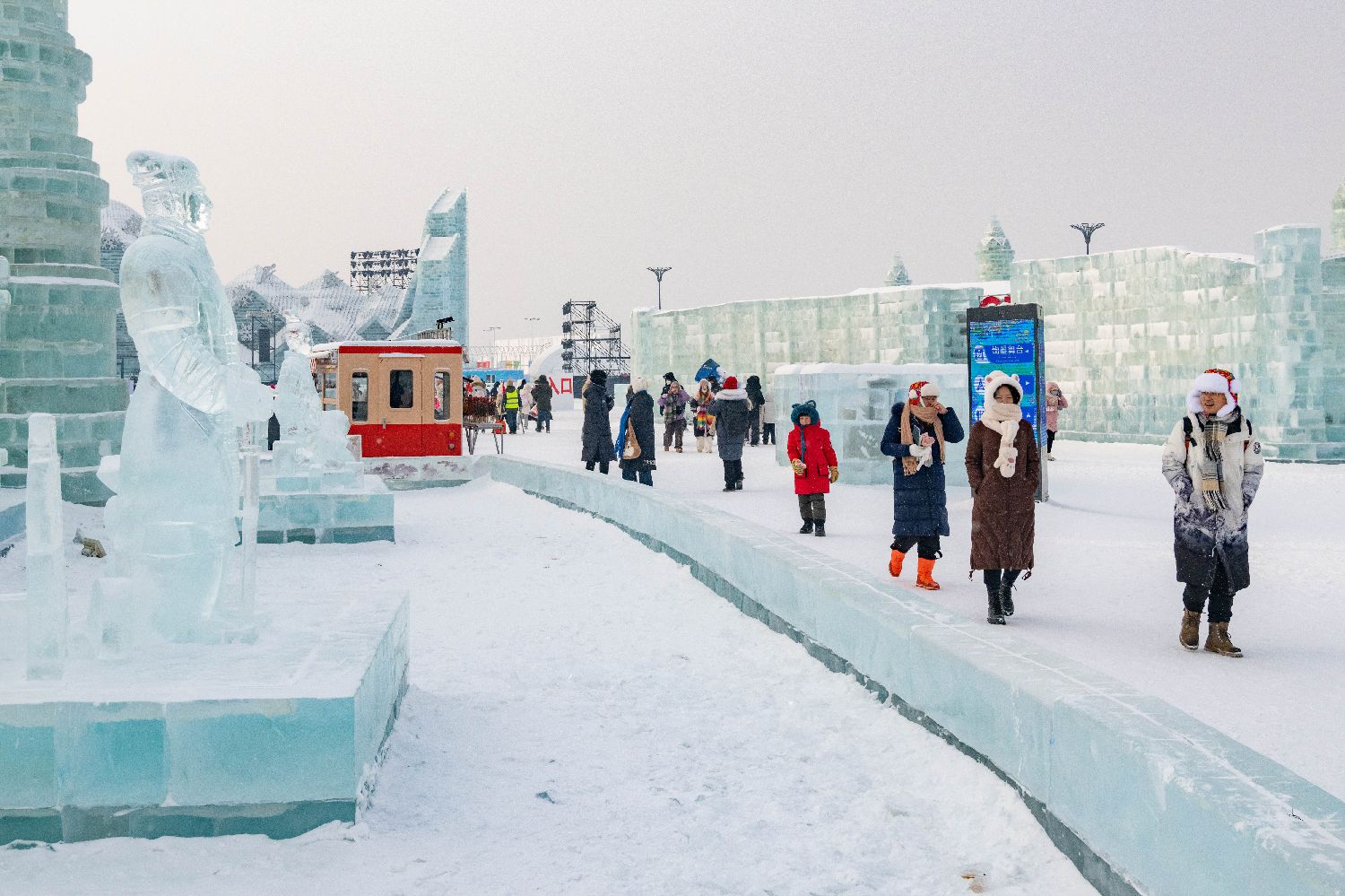 前不久,一组名为“冰马俑”的人工智能合成照片走红网络,不少网友留言表示想在下届冰雪大世界园区中看到“冰马俑”冰雕。为让游客提前“圆梦”,哈尔滨冰雪大世界组织冰雕师在两天内高还原度雕刻出“冰马俑”冰雕景观。