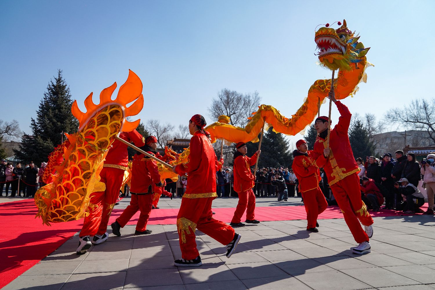 11日,民众在哈尔滨文庙观看舞龙表演。当日,哈尔滨文庙举行系列民俗活动,不少民众前往参与。