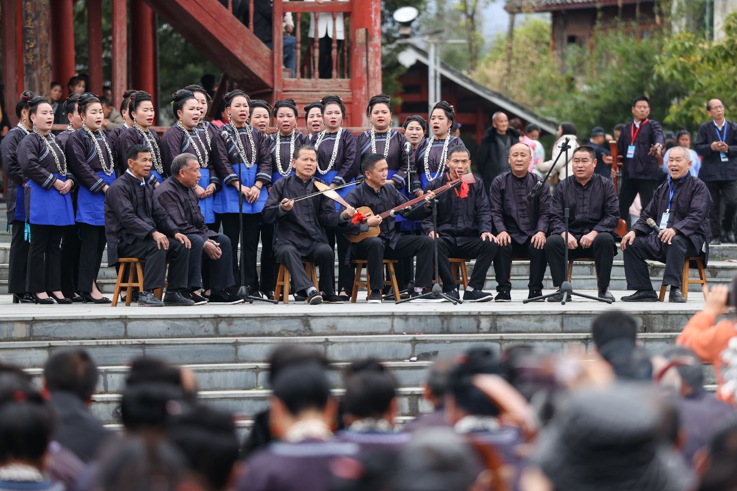 18日,“萨玛节”现场的侗族琵琶歌表演。